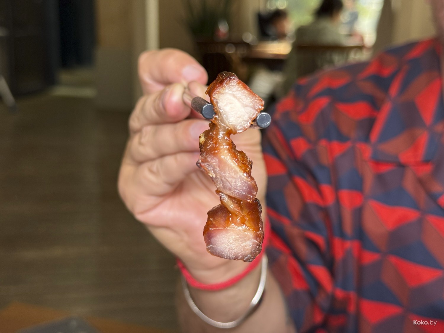 6. Последнее из секретного меню - десять часов маринованная свинина, приготовленная хитрым способом. Ноль сала, нежная текстура поросячьего шашлыка из шеи со сладкой корочкой. Берите смело!