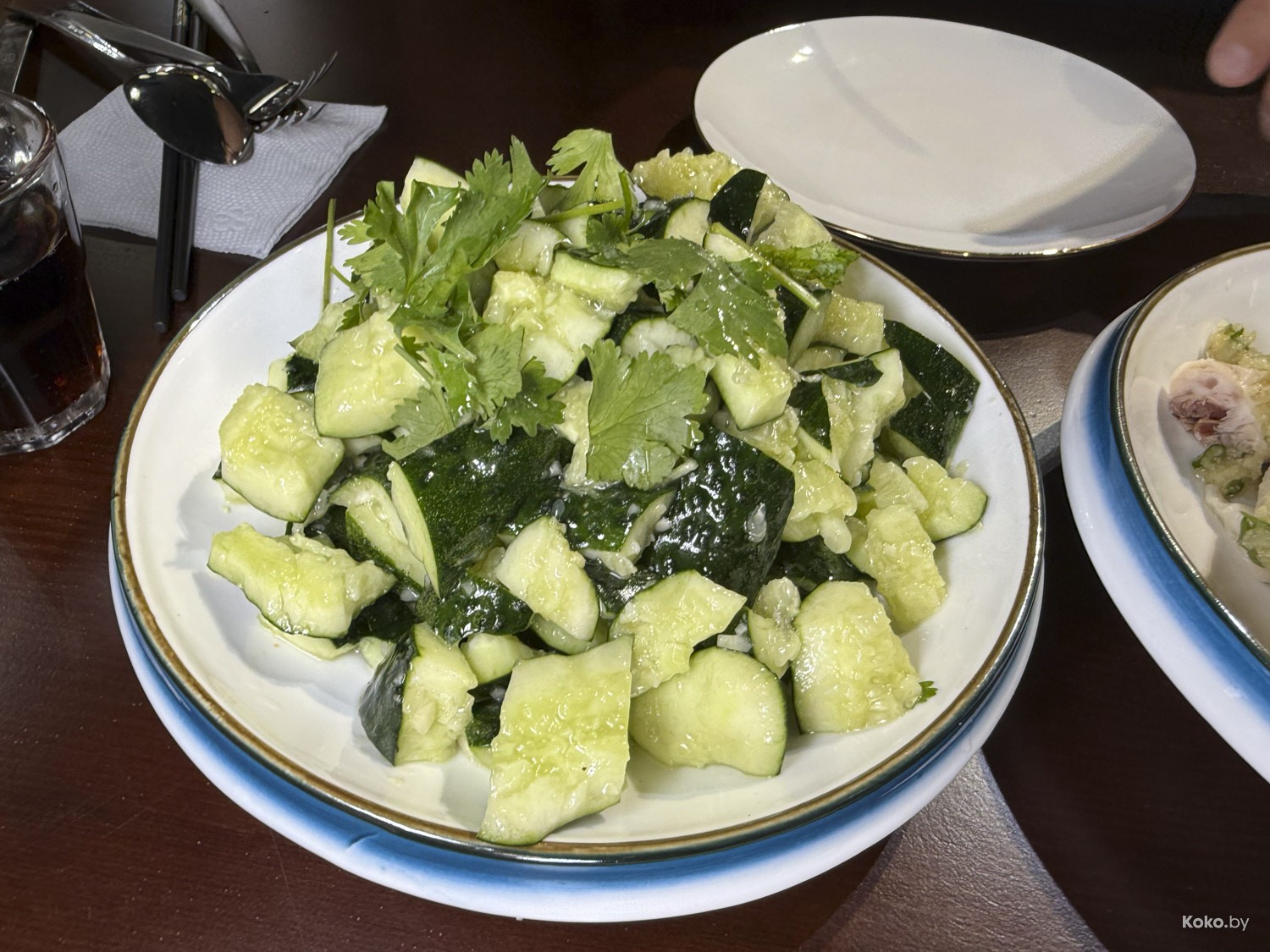 2. Всегда заказываю овощи, чтобы снять эффект острого, сладкого и жирного. Битые огурцы в соевом соусе с чесноком и кинзой за 15р.