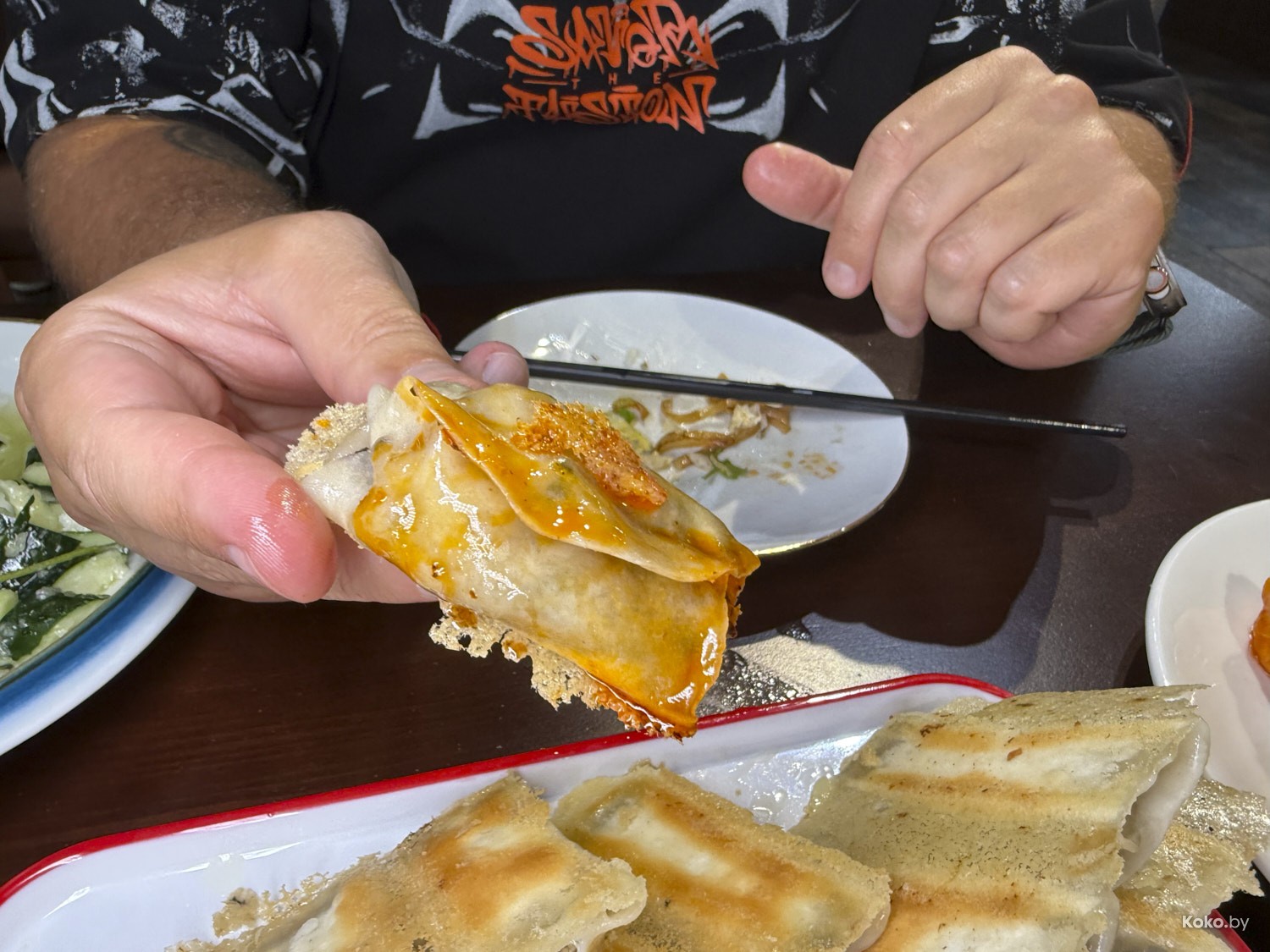 3. И жареная хитрым способом лента пельменей с пекинкой, яйцом и хрустящими древесными грибами за 20р. К ним на соус-баре замешайте соевый соус с вареньем из чили пропорцией 50 на 50.