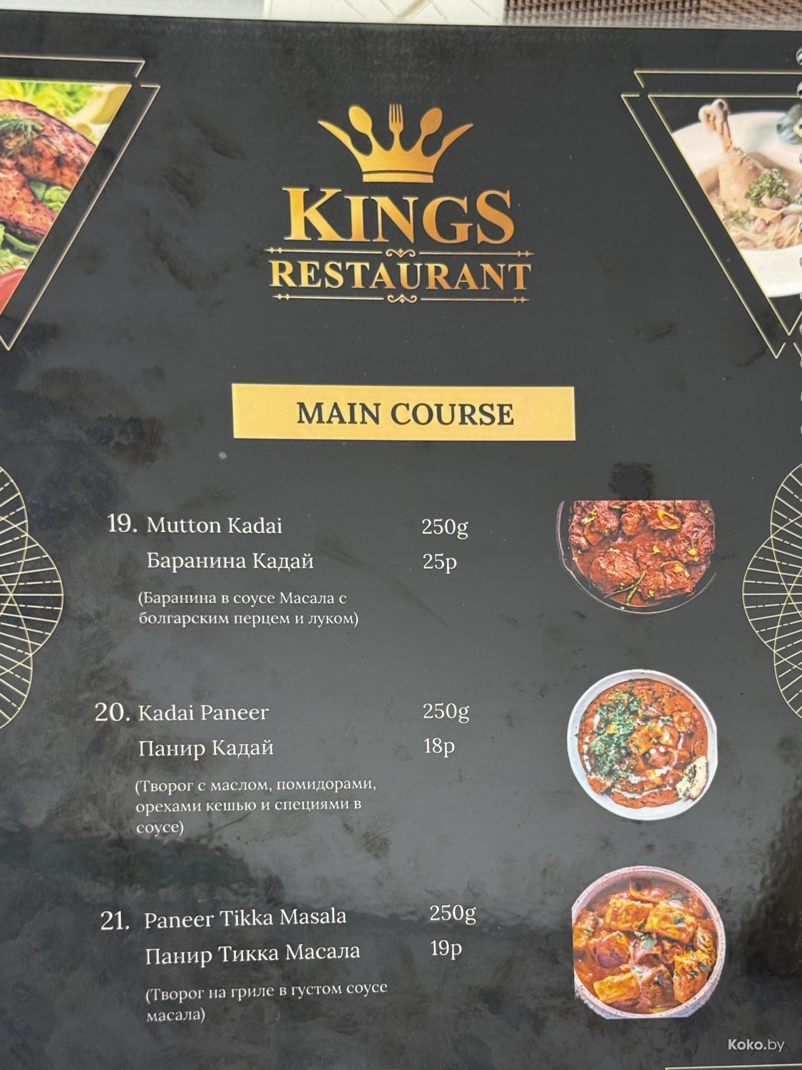 Десять способов курицы в разных пряных соусах, панир, жареный рис, лук, картошка и супы не по ценам Индии, естественно. Фото блюд в меню носят иллюстративный характер, не раскатывайте губу, как мы.