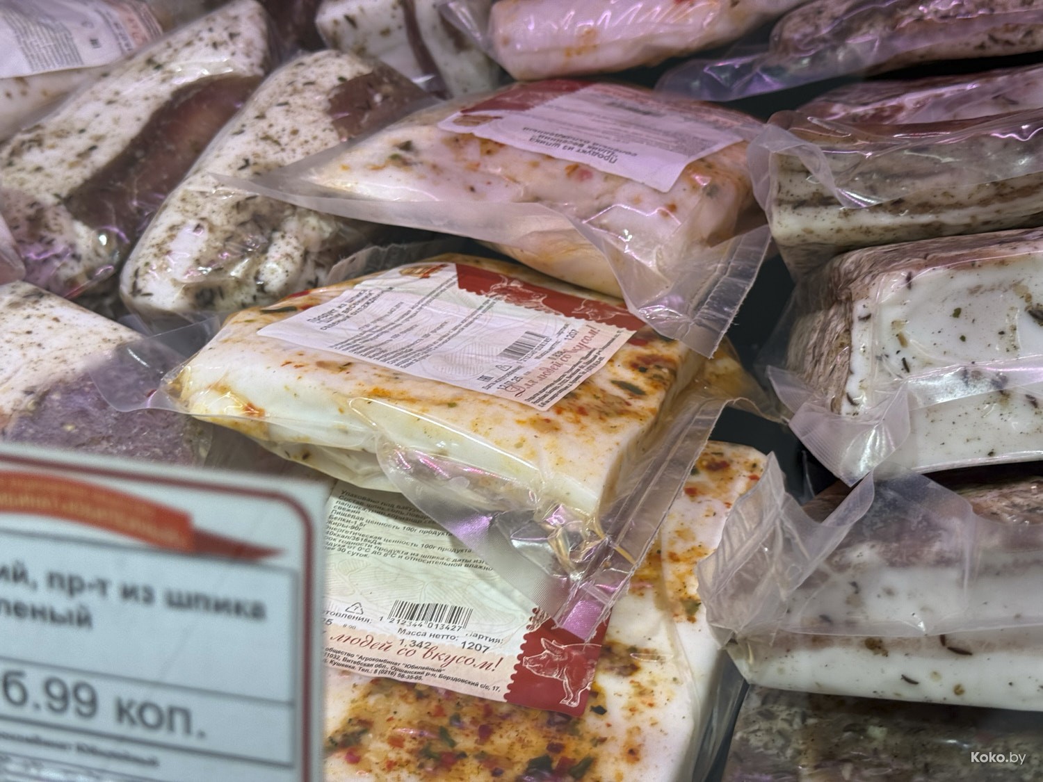 Точку «Мясной фаворит» от агрокомбината «Юбилейный» нашли на первом этаже торгового центра «Першы Гандлёвы», и реально есть такое чисто белое сало, вот только оно свежее, т.е надо будет солить.