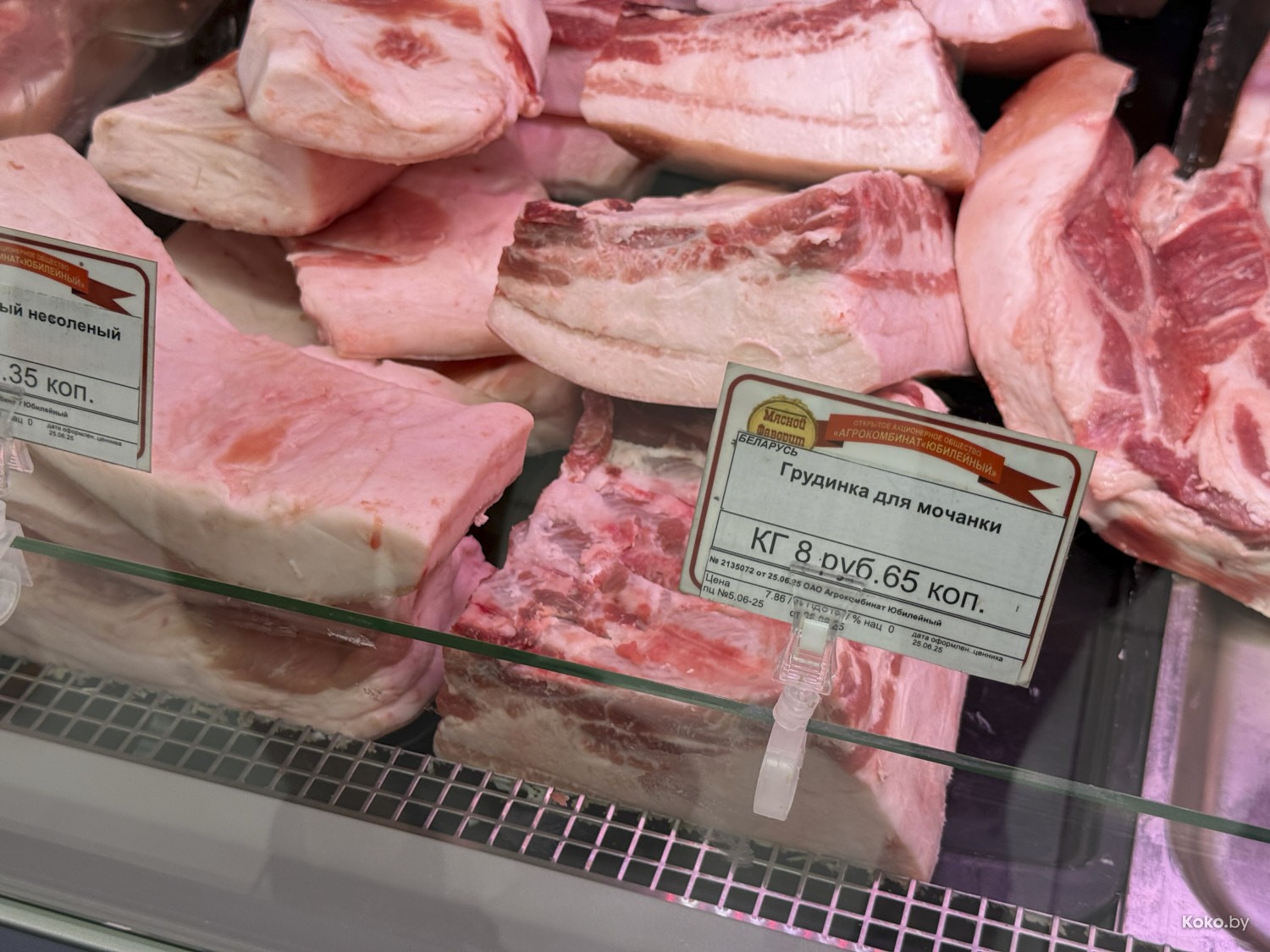 Самая дорогая часть поросёнка - 10,89р за грудинку без кости, грудинка для мочанки 8,65р, для запекания с картофелем - по 7,52р. Прям свиной рай во всех смыслах, надеюсь, после обзора цены не тронут.
