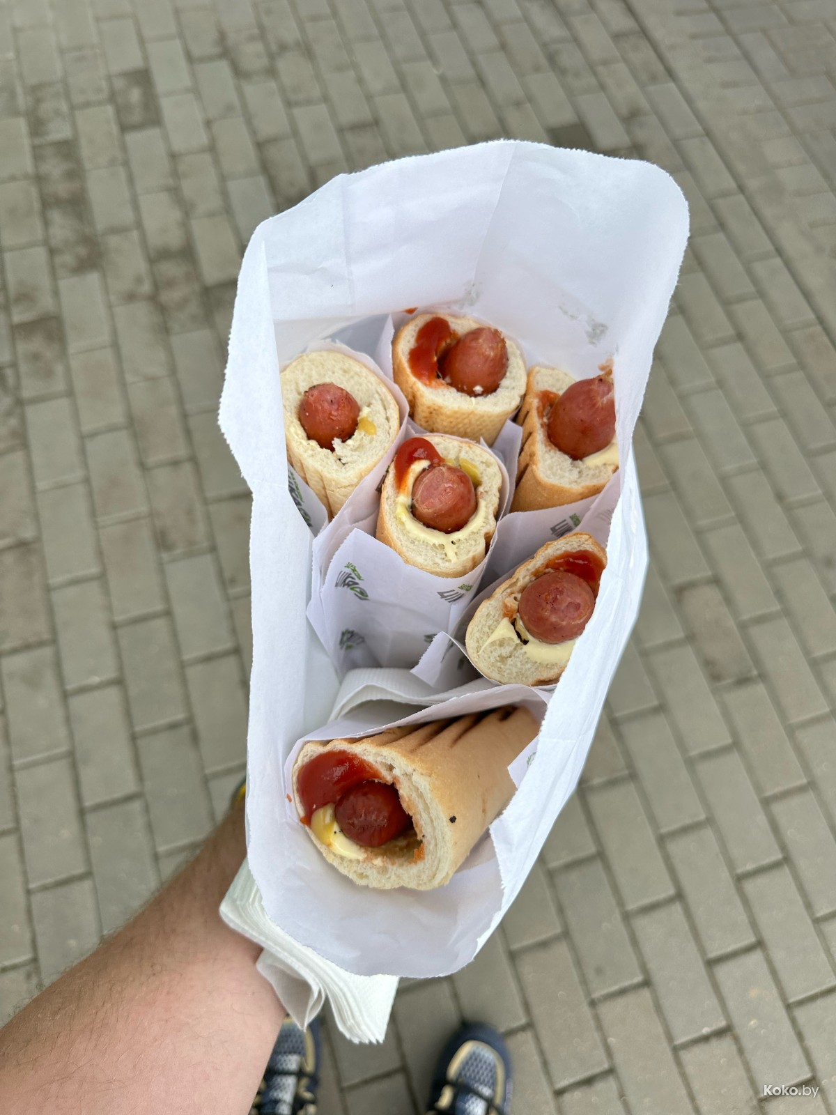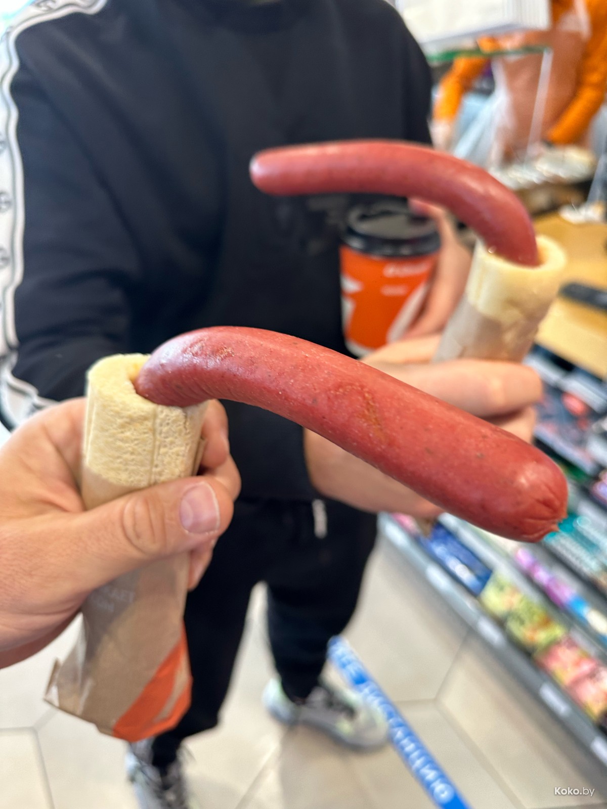 2. Хот-дог за 12р с курицей с вертела и говядиной под маринованным луком сразу нет, сам хз, как такое выбрал, только сосиска, а лучше две.