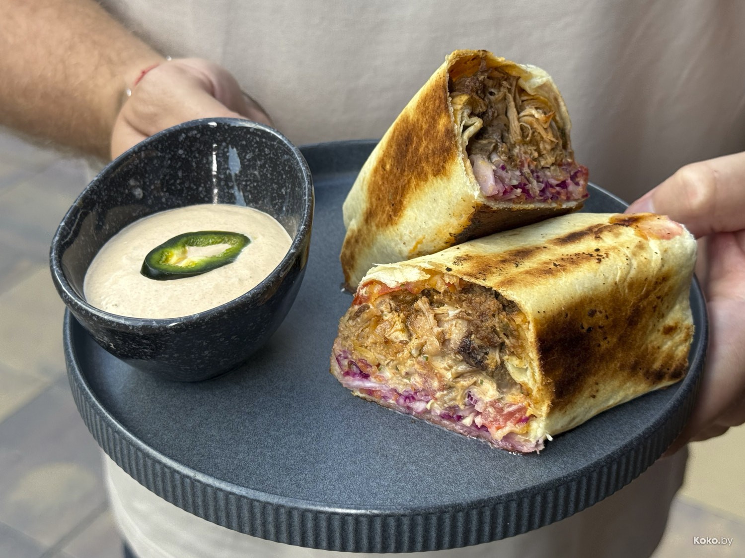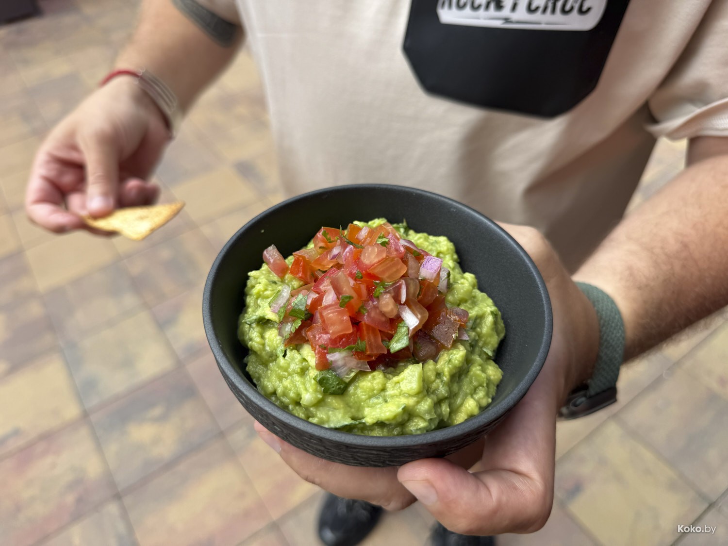 4. Толстый Буррито со свининой за 22р и гуакамоле с чипсами за 18р.