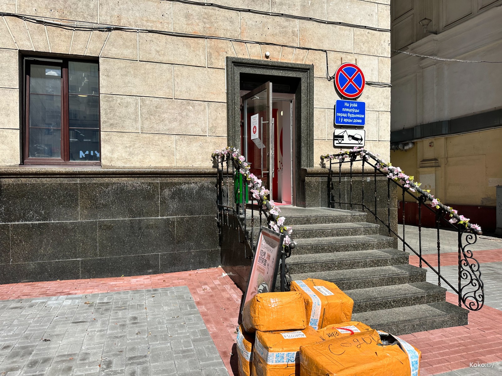 По всем стенам разместили китайского коронованного снеговика - тотем бренда, есть столы со стульями, за стеной работают перфоратором. В остальном базовая баблтишная с пёстрым ремонтом на быструю руку, но с инстаграмными нотками для заманивания в свои сети молодёжи.