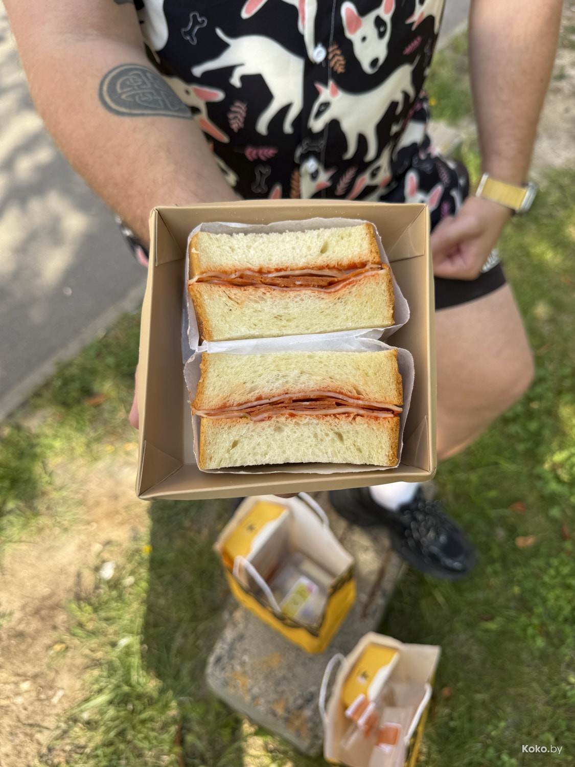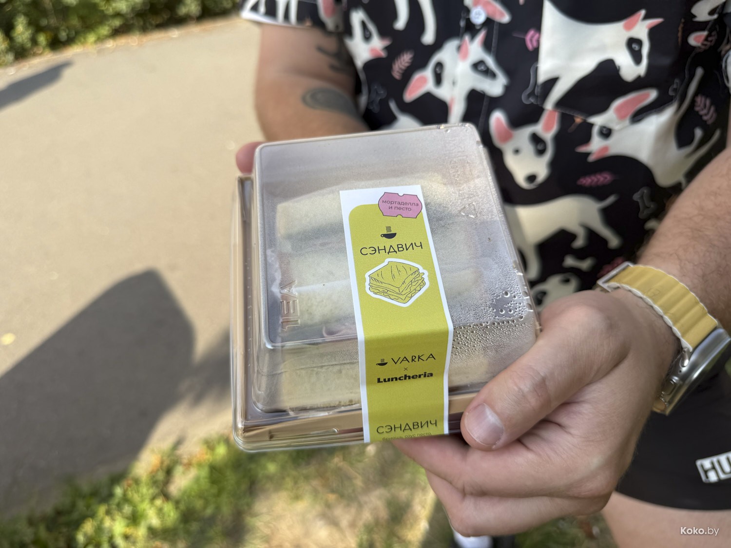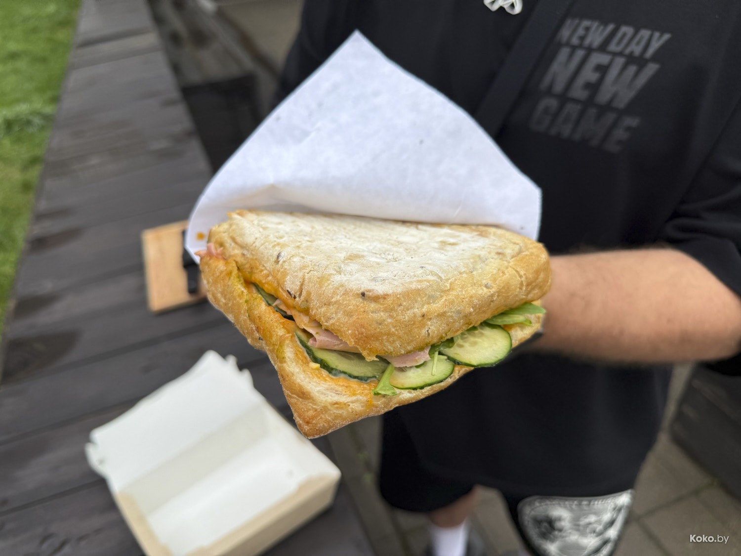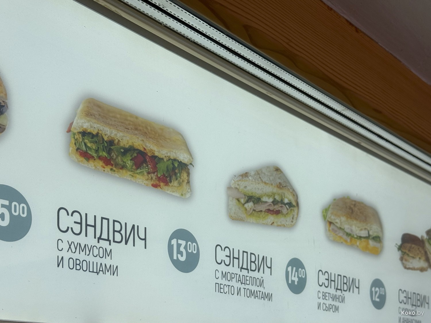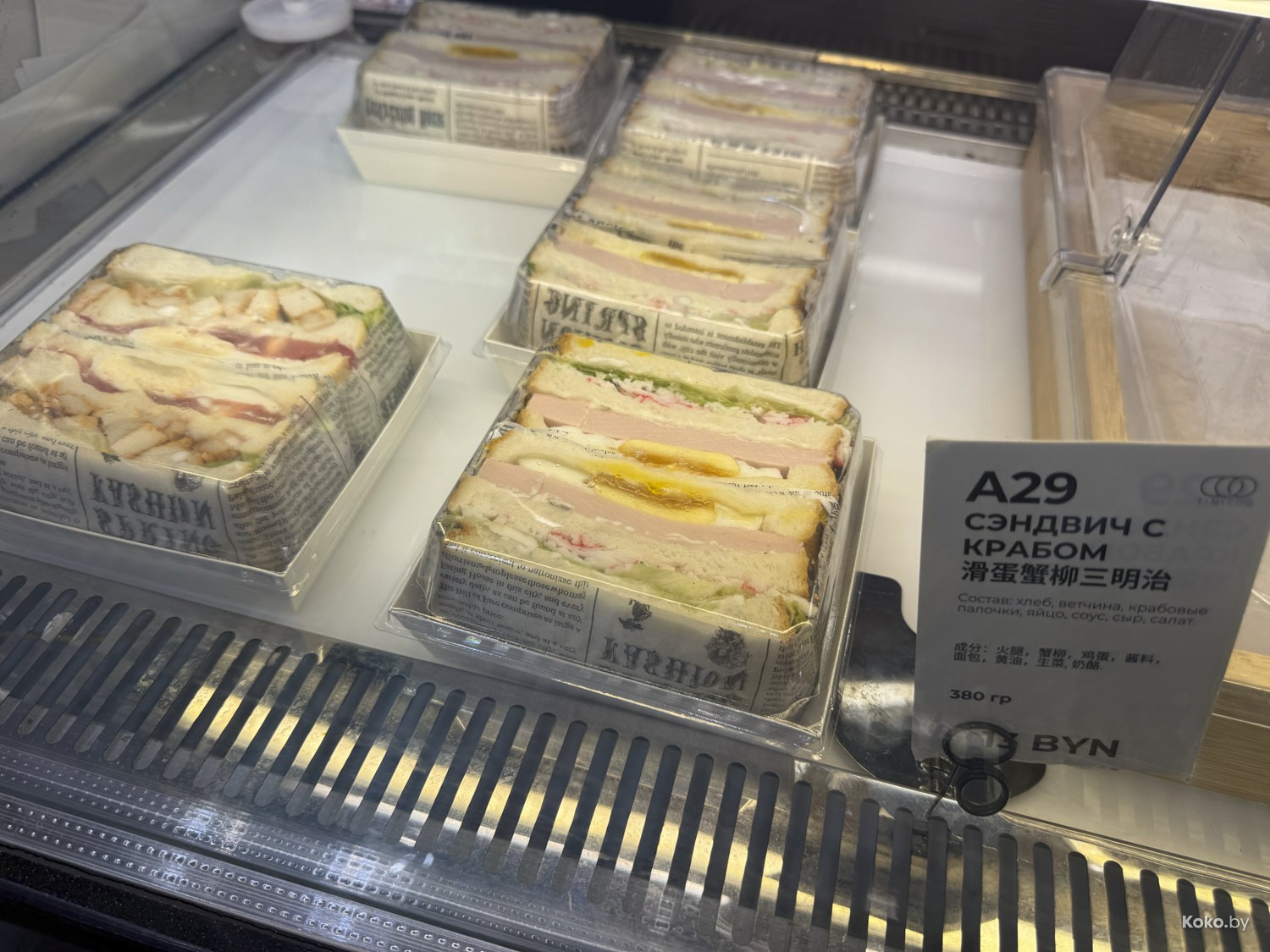 Почти все сэндвичи собирают из-под ножа, но есть и готовые варианты с полки, которые можно сразу оплатить и не ждать 10 минут. Вот так выглядит трушный сэндвич, наверное, никогда в Минске.