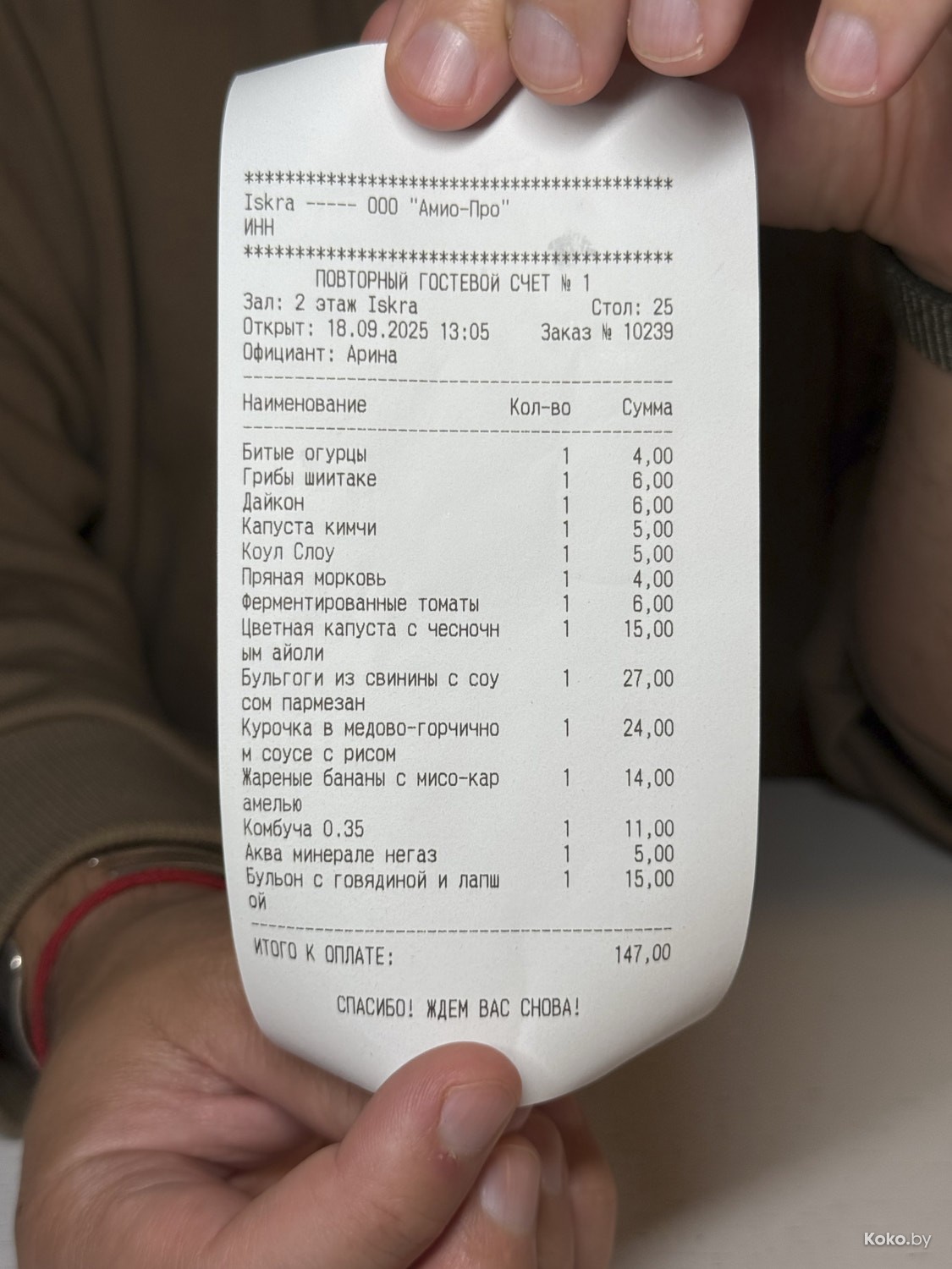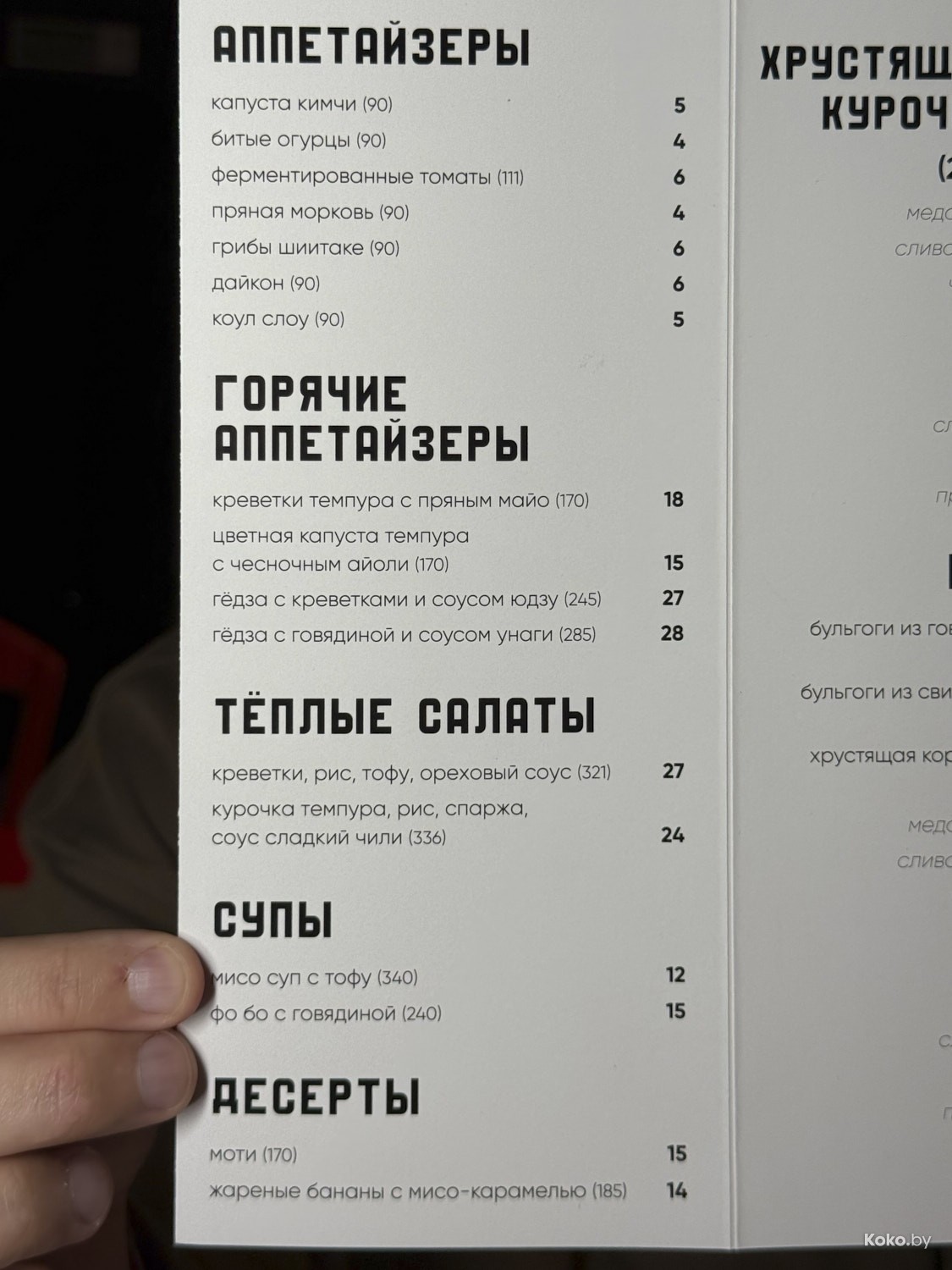 Очередной ритуал воскрешения провели в помещении старого «Энзо» на Октябрьской, где прошлый франкенштейн «Искра» прожил чуть дольше года. В этот раз решили вызывать недорогую базовую азиатскую еду, как в «Нудлс», которые недавно покинули «Минск Мир» и «Новую Боровую» без объяснения причин. В мелком меню замес китайско-японо-вьетнамских блюд кухни улиц. Странный выбор, когда есть «Чико», анлим «Юми» и ещё под 30 китайских кафе.