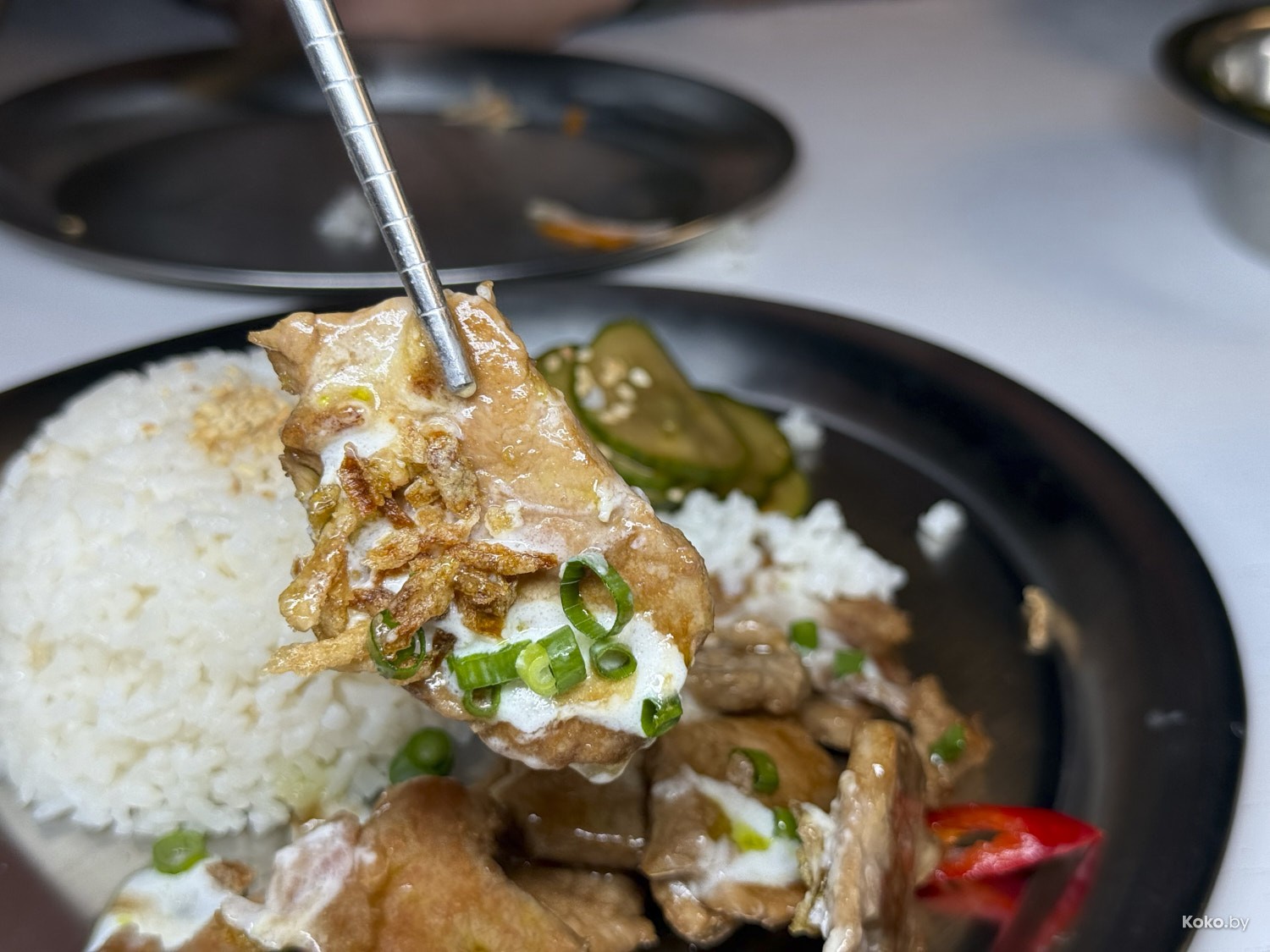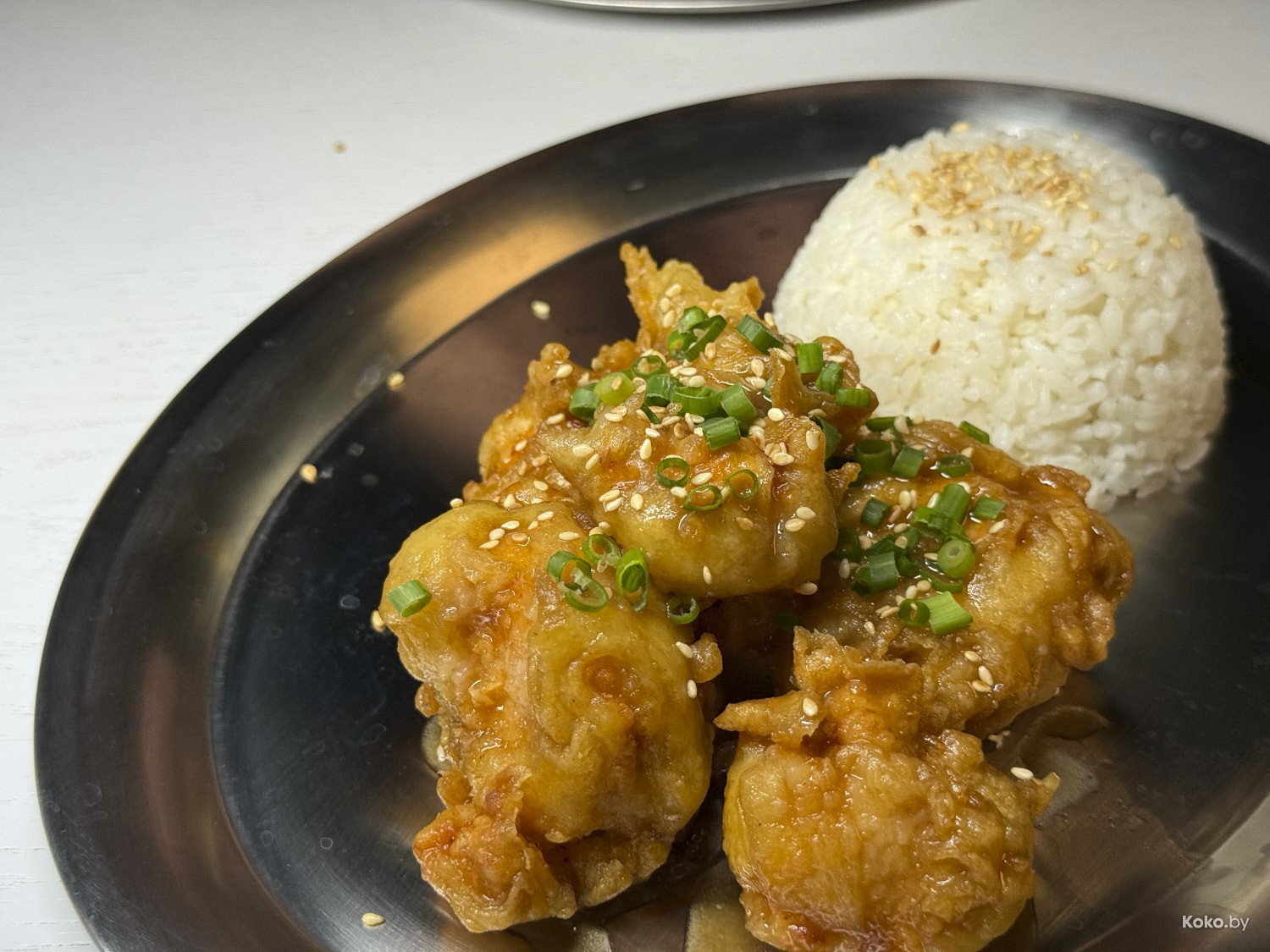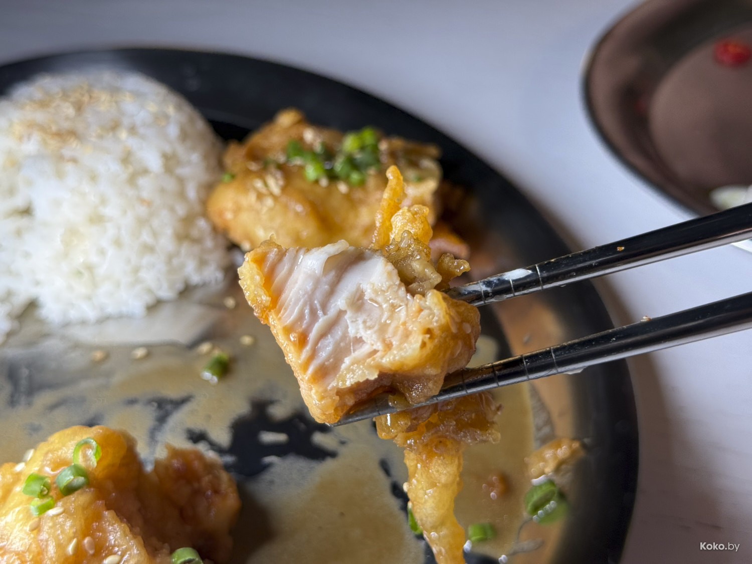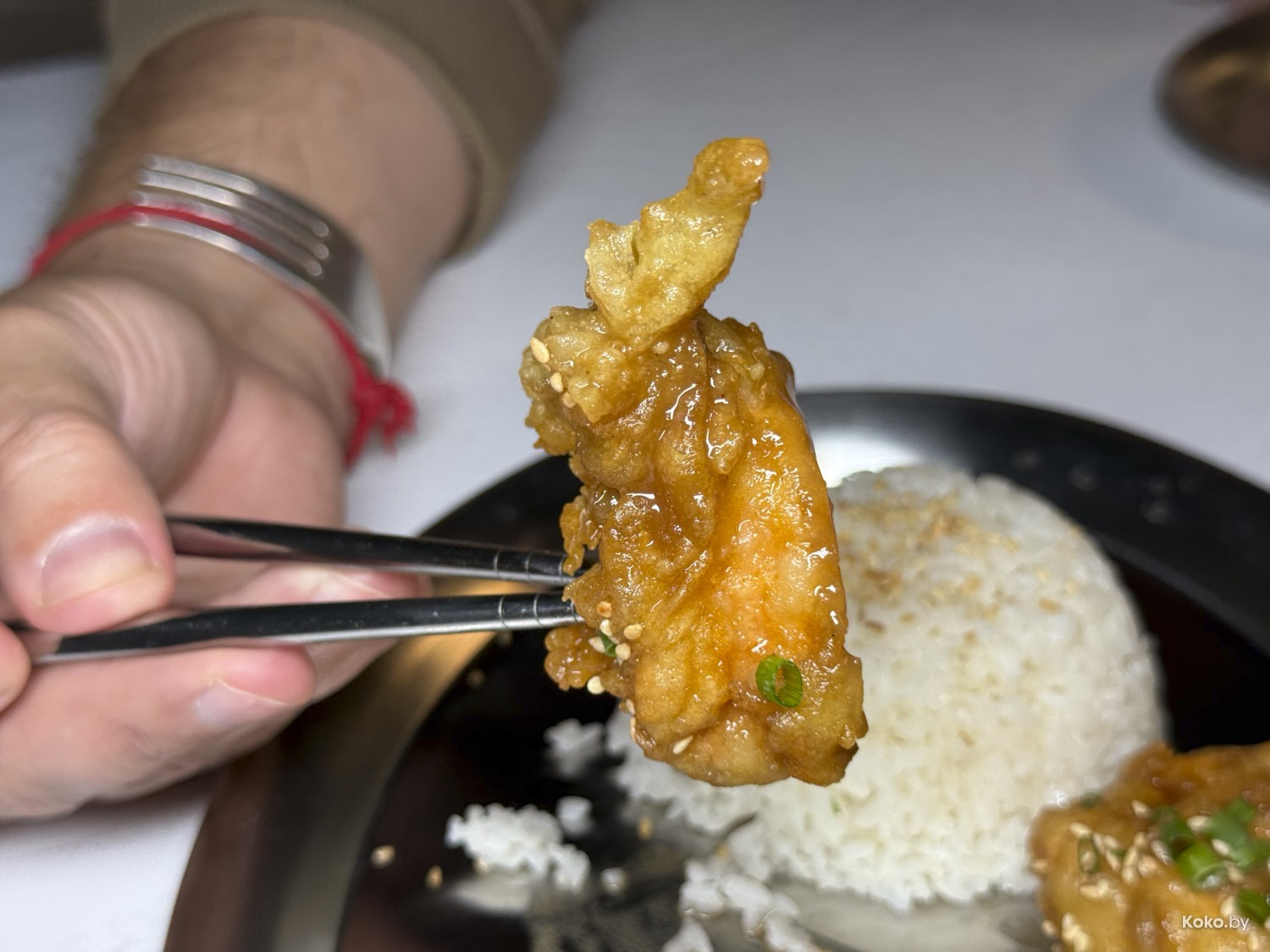 5. За 18р хрустящий цыплёнок с рисом получился не хрустящим, сама курица скорей всего маринованная, зачем? Как из обеденки.