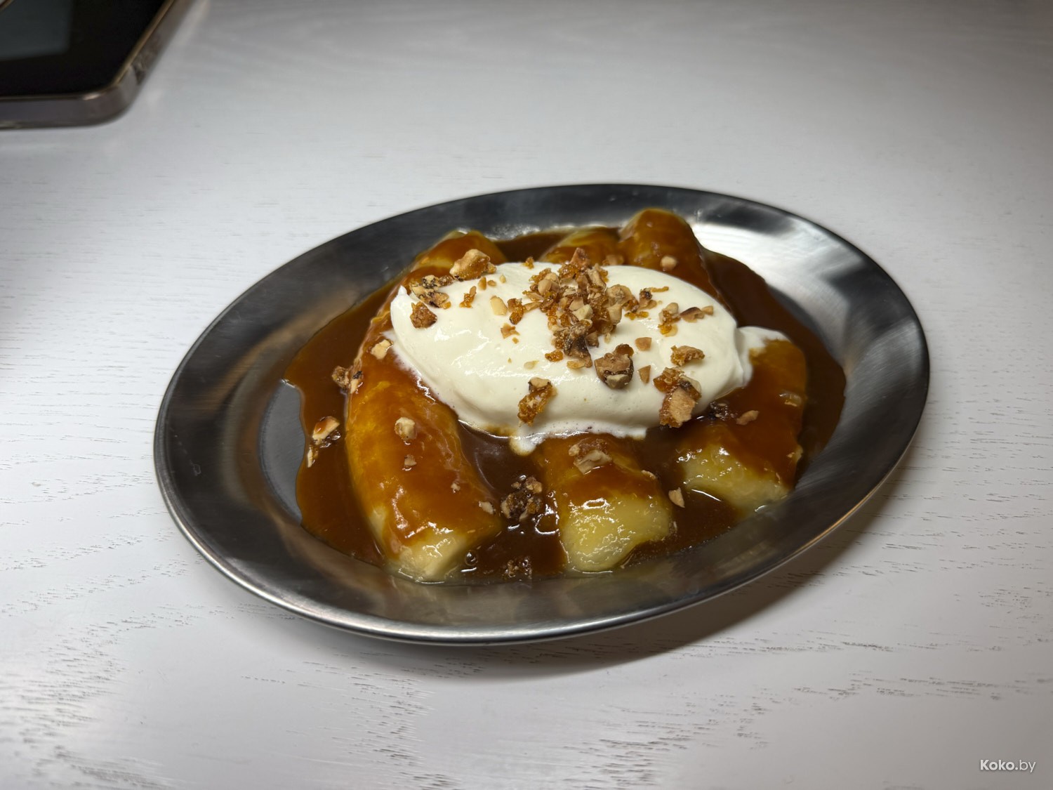 7. Вот это в яблочко, а точнее, жареный банан по-тайски в солёной карамели с хрустящей крошкой за 14р - топовый топ.