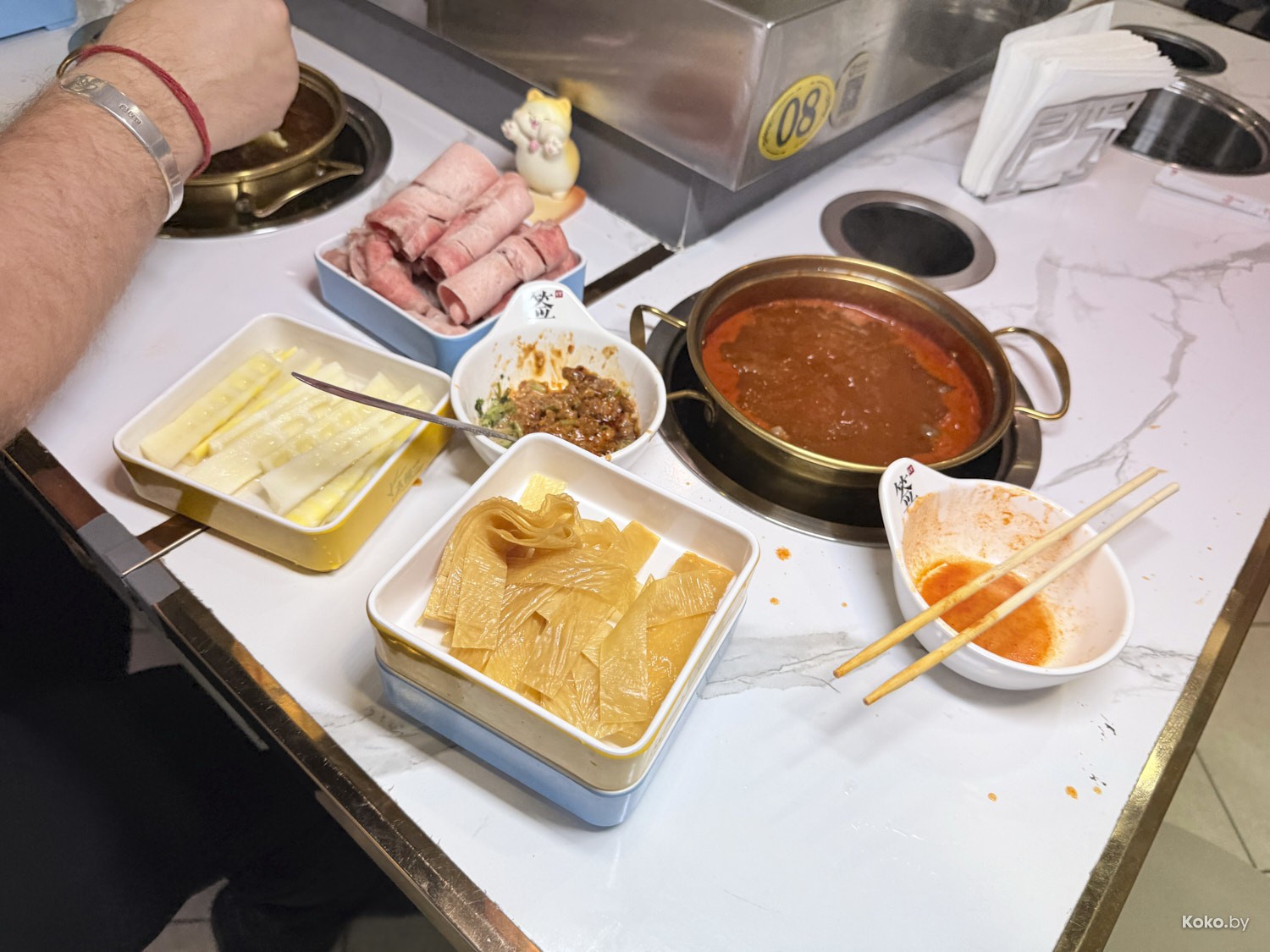 Я выбрал острый бульон на сычуаньском перце, бро заказал томатный.