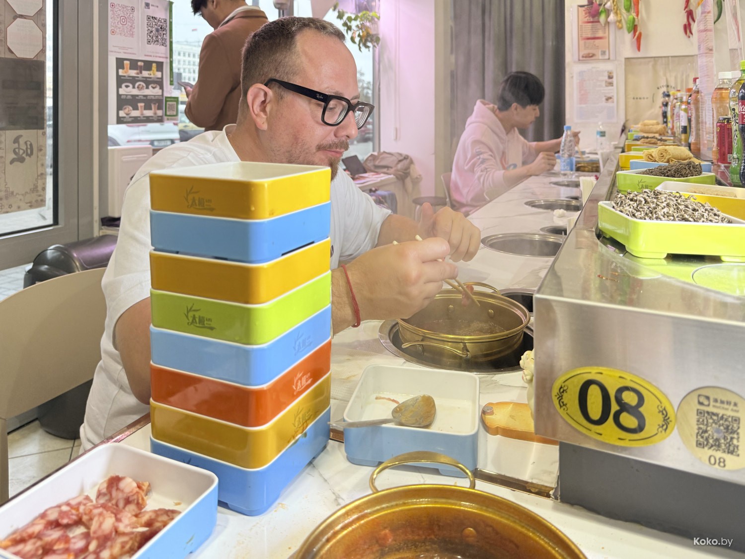 Случайности не случайны - найти кафе, где варят горячие пряные супы, когда за окном прохладная осень. Домашнюю кухню китайцев «Тайцзи» нашли во дворе на Могилёвской, такие харчевни работают для своих, где меню на русском большая редкость, как бледнопузые в хогошных. У тех формат суповой, где в столы встроены индукции, куда вам приносят бульон на выбор, а по конвейеру гоняют продукты для их варки. Сейчас проверим на себе, сколько стоит похлебать супчика.