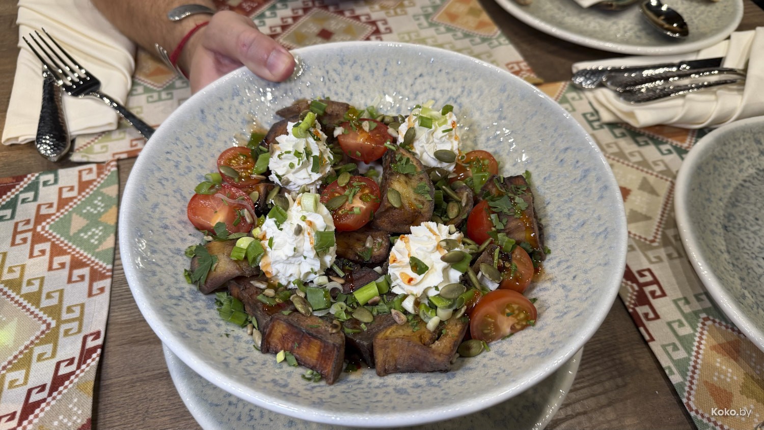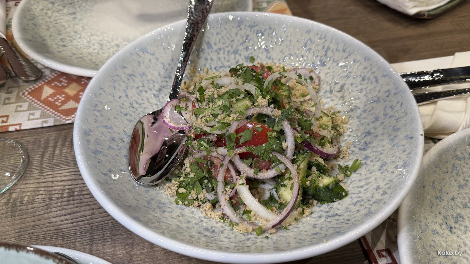 2. Оба салата збс, но размер порции европейский, берите тот, что с ароматными огурцами, помидором и луком под ореховым соусом.