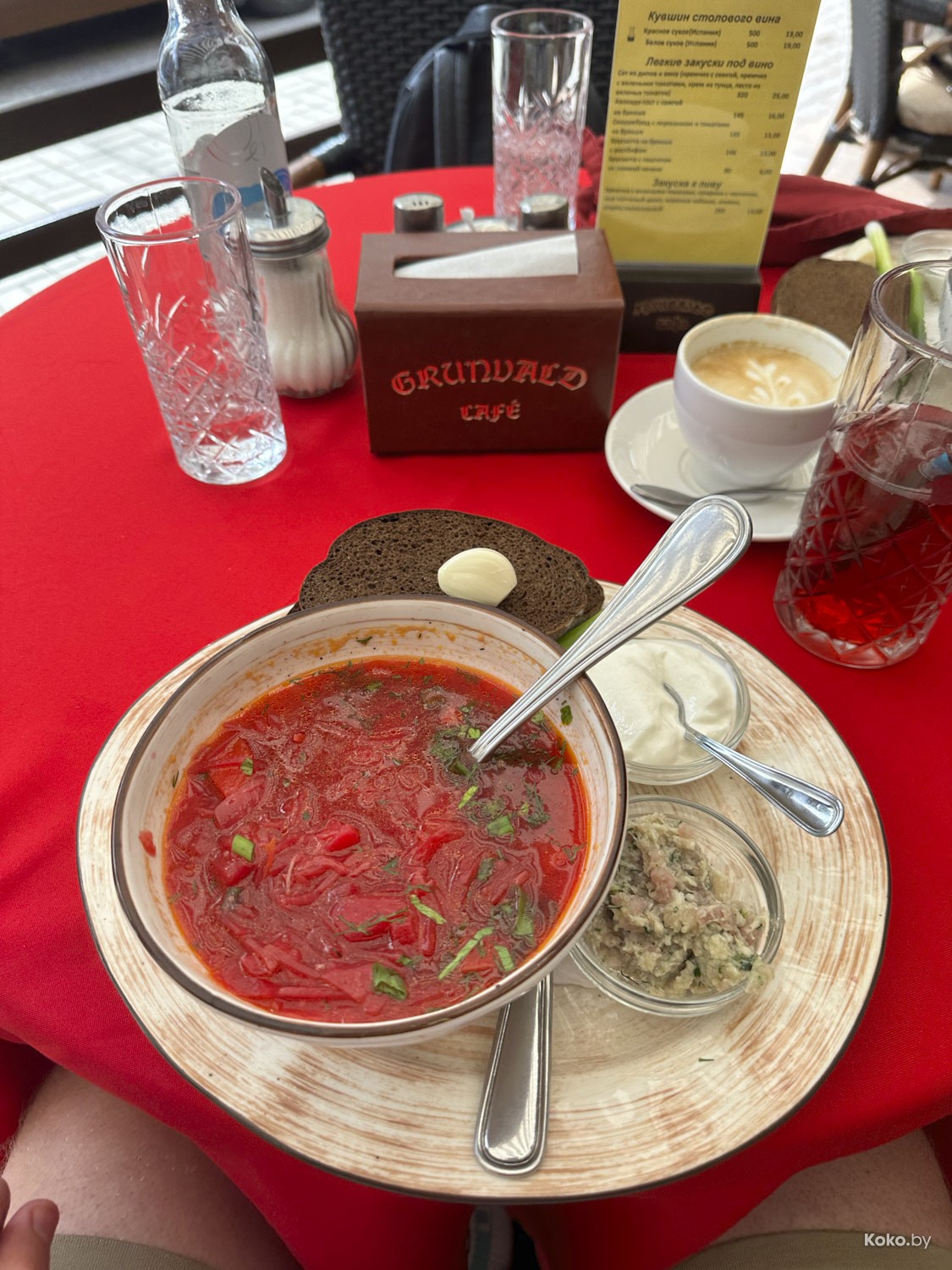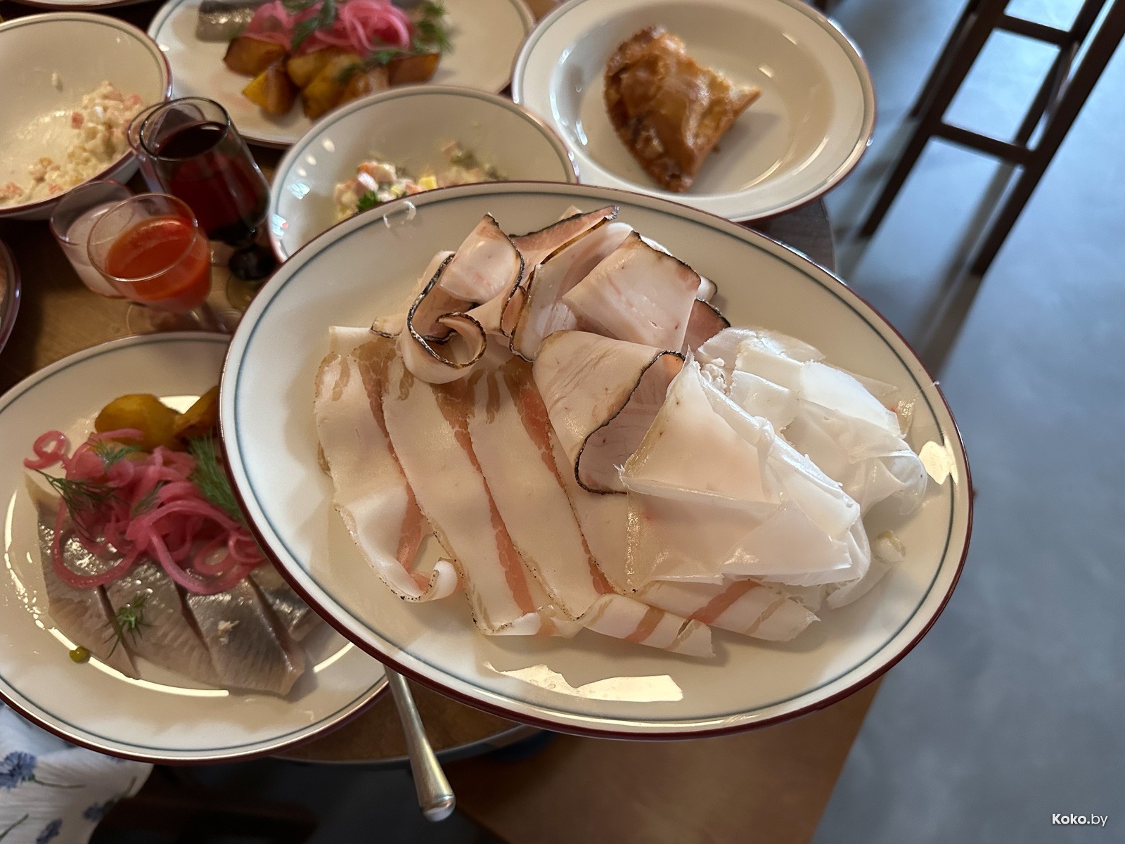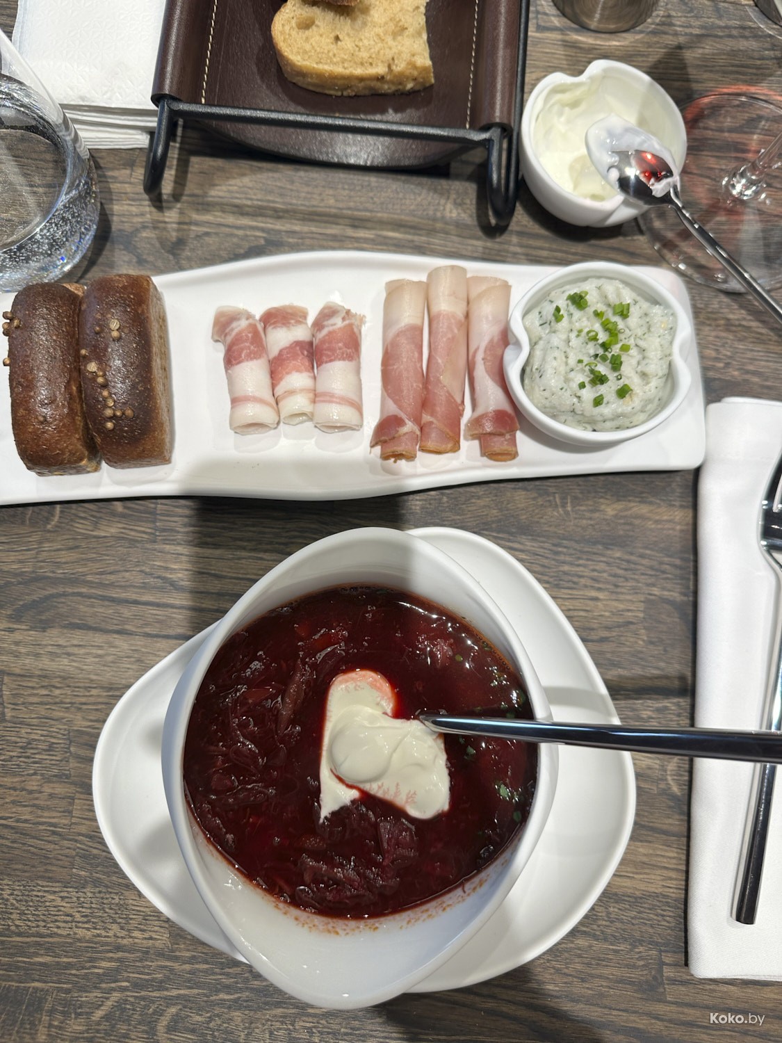 Конструктор драников, баночные соленья, сало, селёдка с луком, борщи хоть рот полощи. Меню, как на Новый год в любой белорусской деревне.