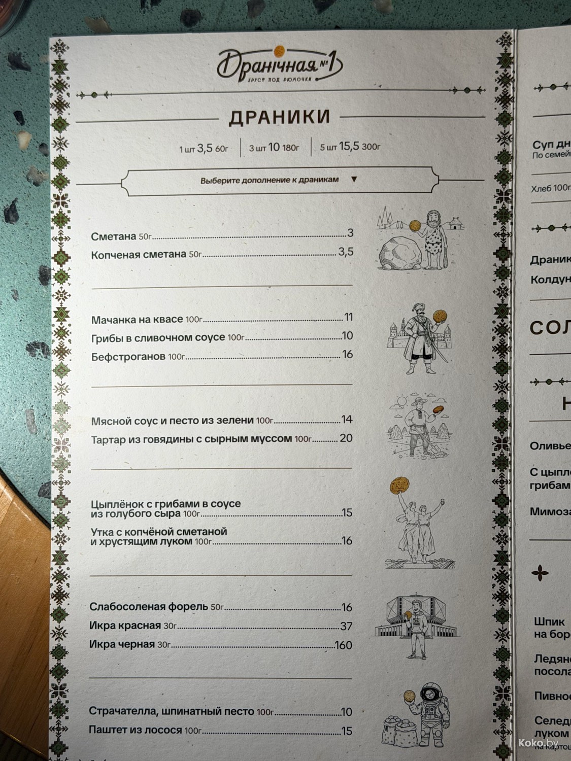 Просто драники, просто салаты, просто еда, завёрнутая в душевную концепцию драничной, которая играет на наших инстинктах. Молодцы!