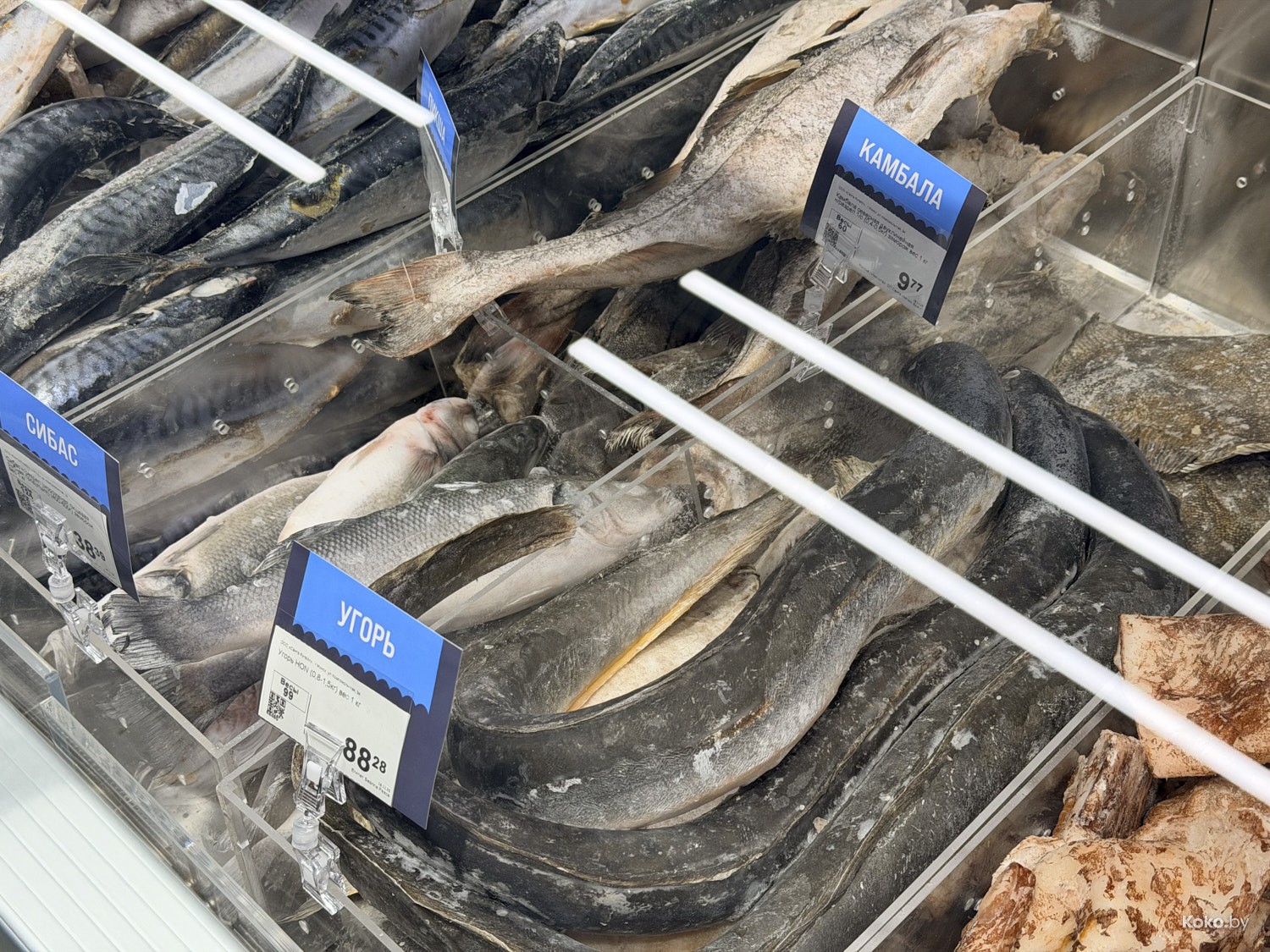 Смотрите что нашёл, замороженный угорь по 88,28р за килограмм.