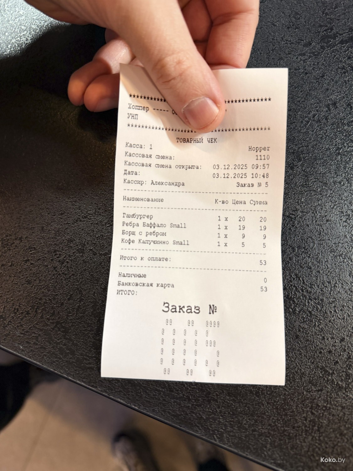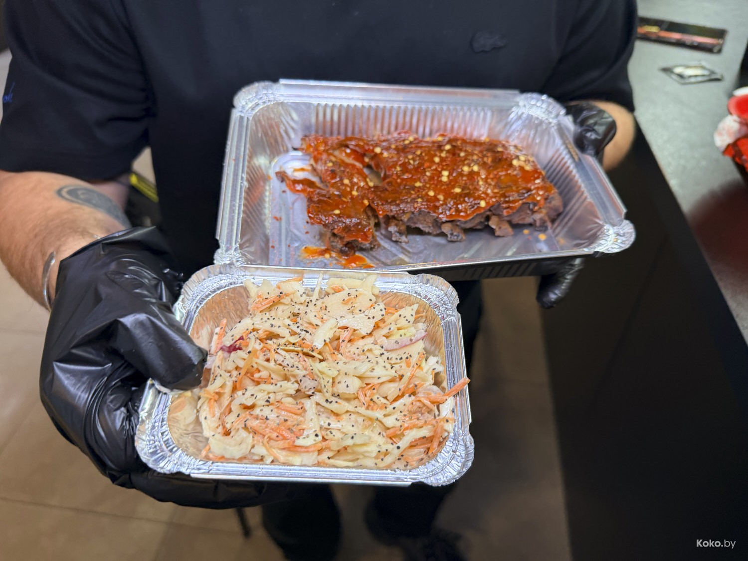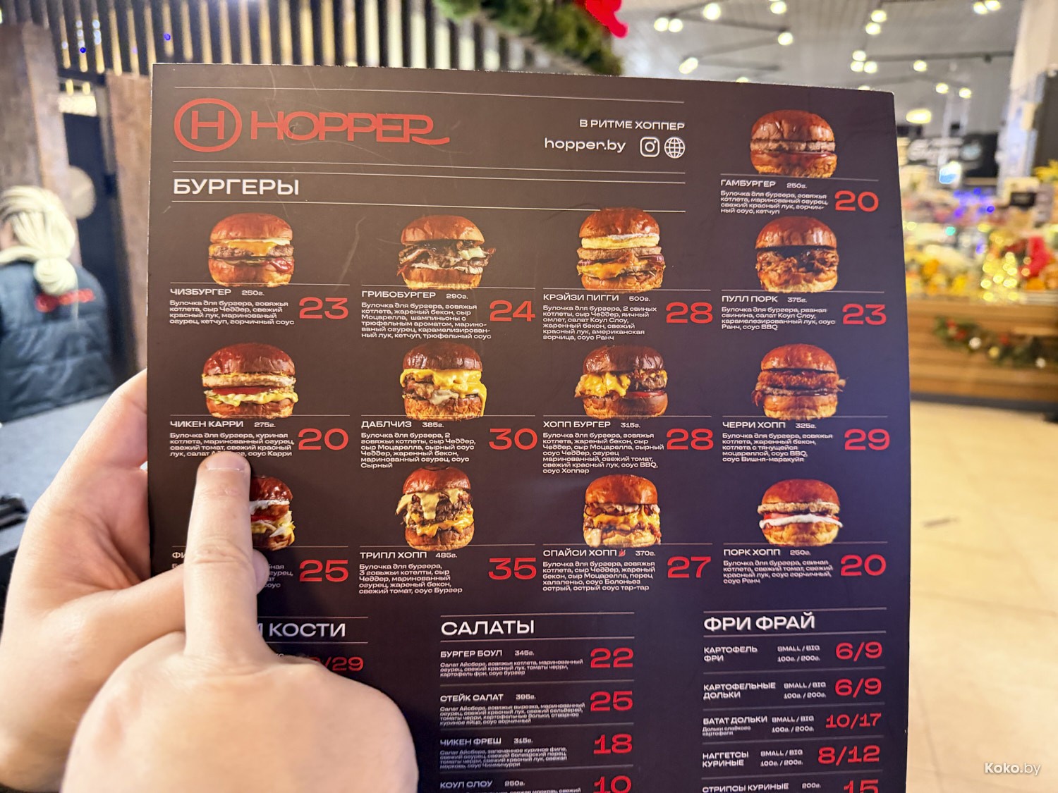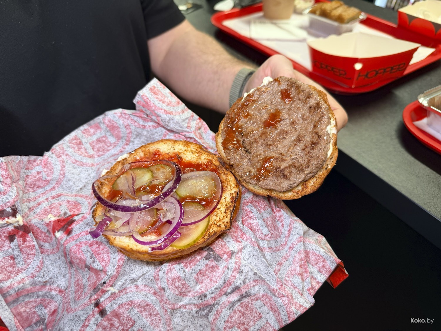 Собирают бургеры от 20 до 35р за тройную котлету, тот самый борщ с ребром за 9р, рёбра по 19р детская порция и капуч варят для местных.