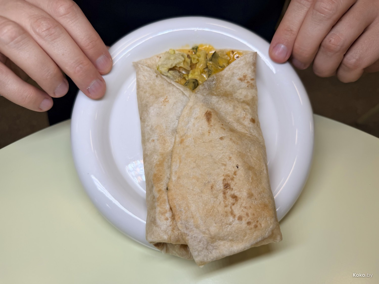 3. Врап, он же ролл с курицей за 15р, разогретый в микроволновке, вонял так, что аппетит пропал. Дело в прогретых листьях салата и маринованных огурцах, на 5 кокобаев. Лучше выбрать суп.