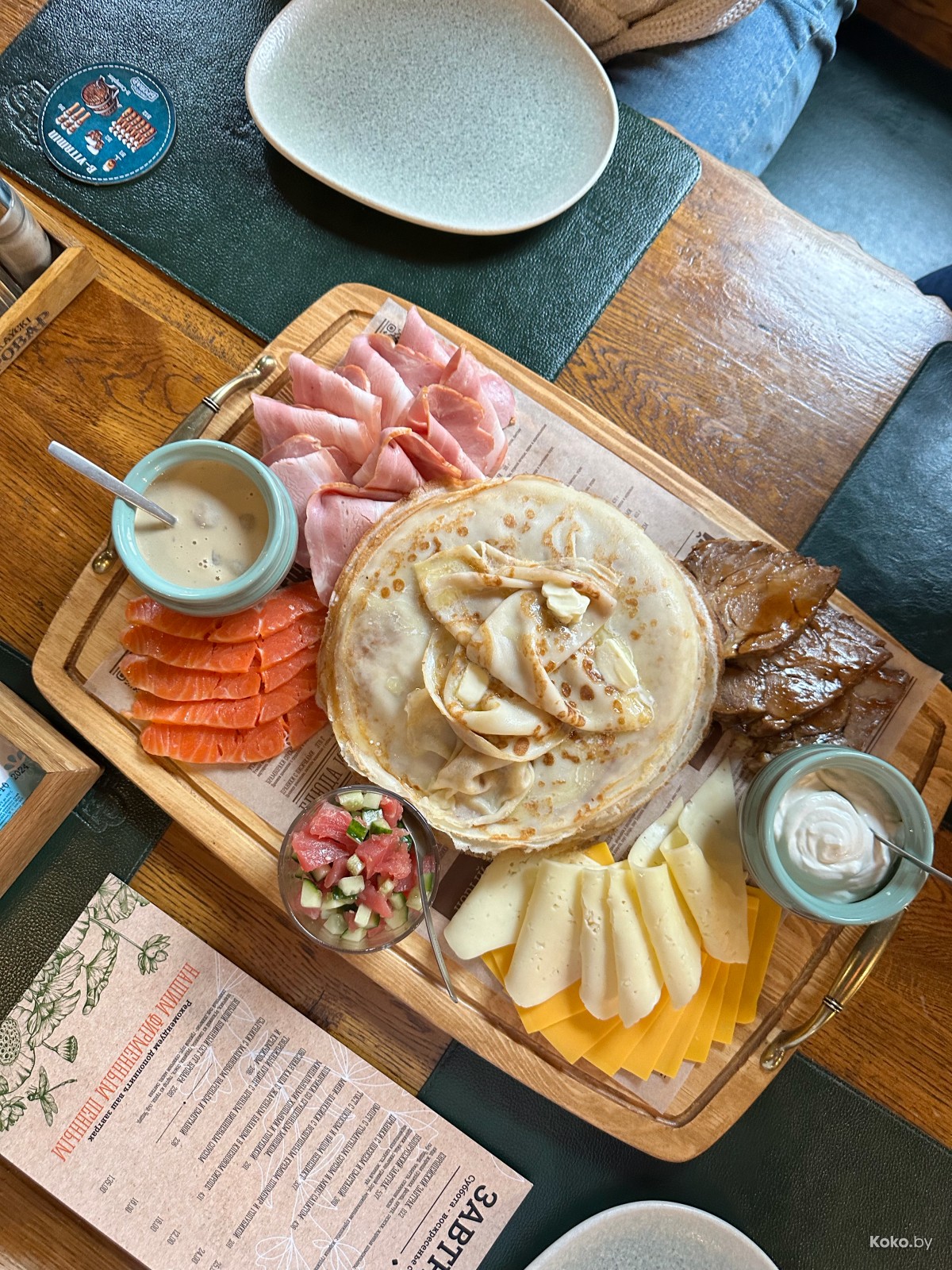 Меню, как на новогодний стол до звона курантов и на утро, когда голова бобо. Оливье, драники, груди в сметане, борщи - нам с товарищем тащи, и морс не забудь. С учётом веса блюд, цены выглядят приятно.
