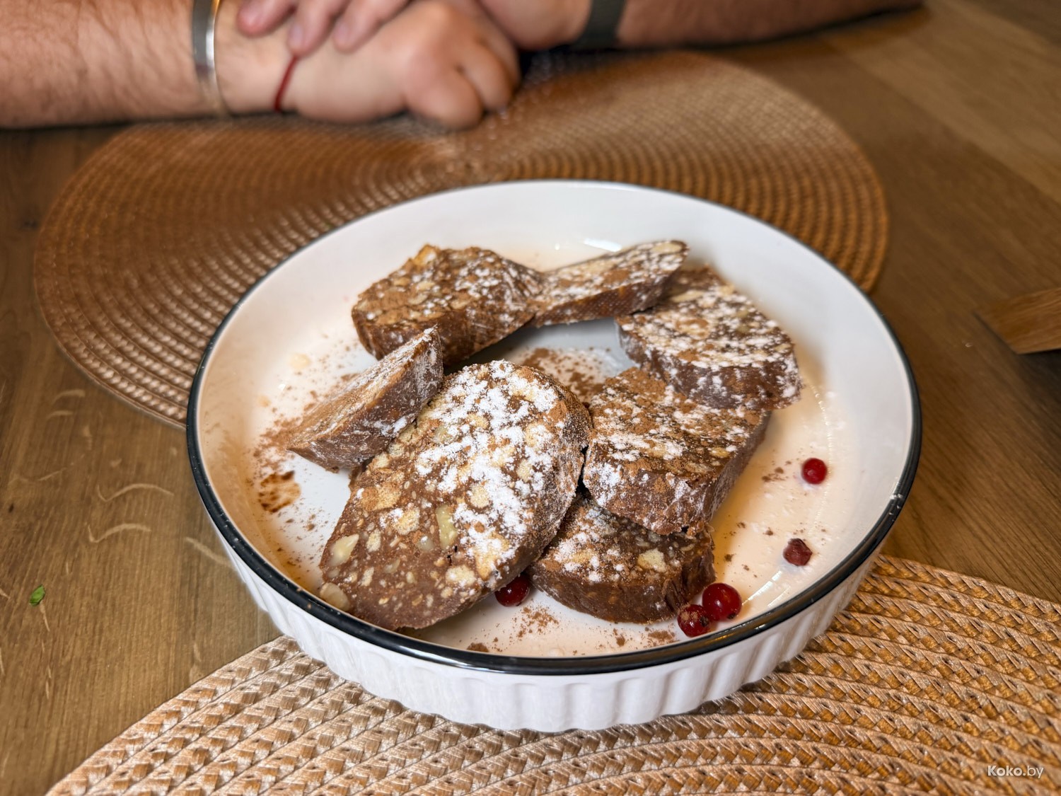 6. За 12р сашими из шоколадной колбасы с печеньем и арахисом, как в лучших деревнях Беларуси. По десертам в меню грустное зрелище.