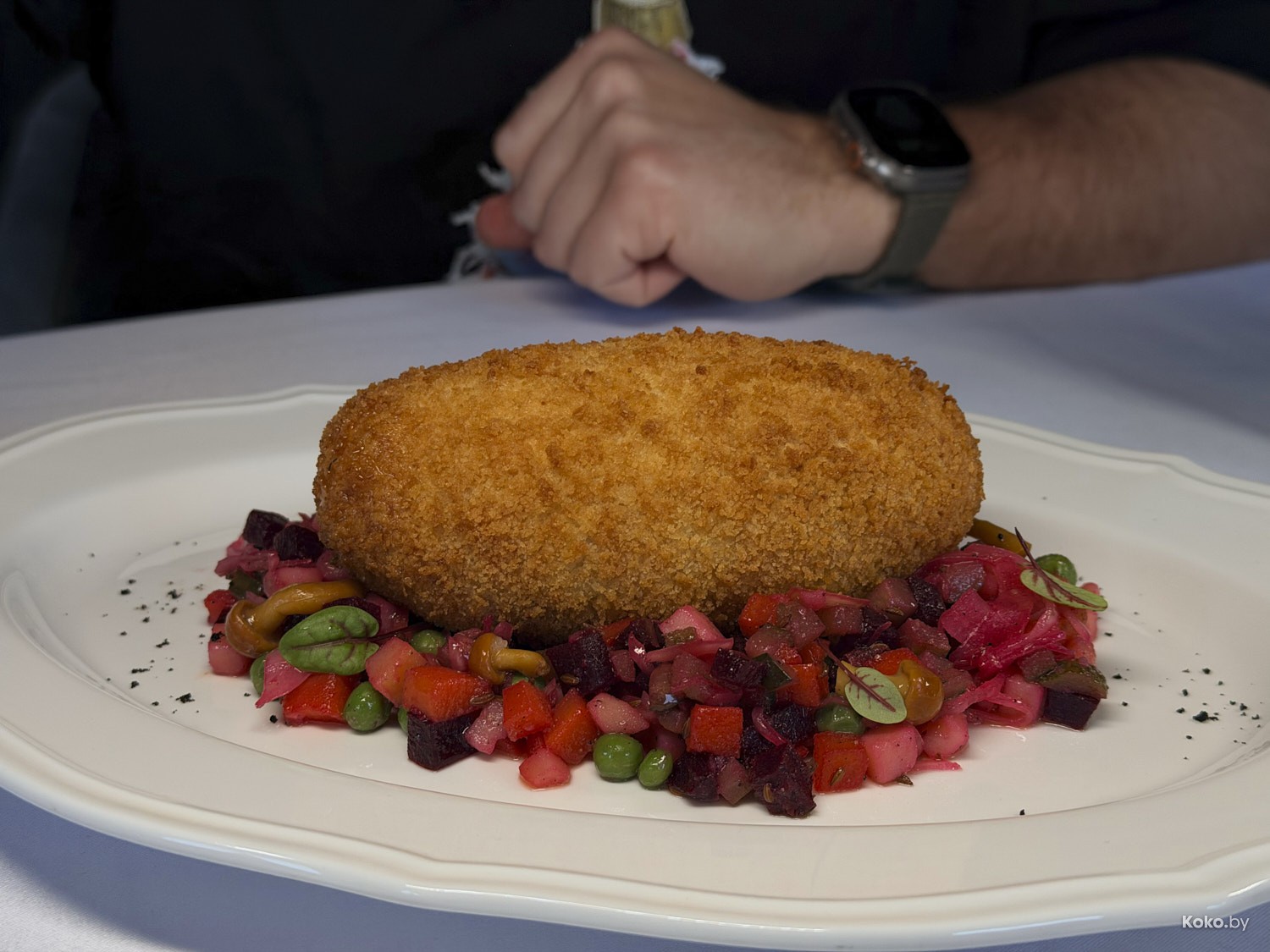 2. Котлета по-киевски на винегрете с магазинными опятами за 30р. По ГОСТу её делают с куриной косточкой, но никто не хочет париться.
