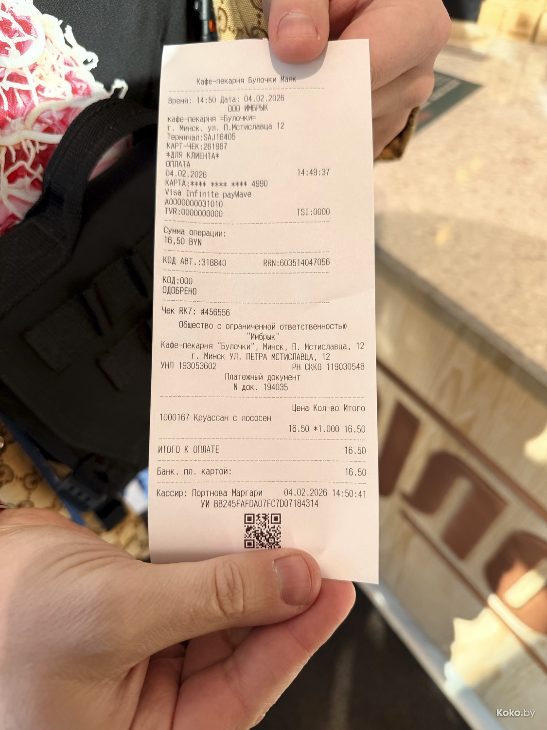 За 16,50р выдали похожий на правду воздушный круассан, промазанный кремчизом, на нём свежие овощи, но не так много, как хотелось бы, вкуснейшего лосося своего посола. Пушка-ватрушка, но и цена икс два.