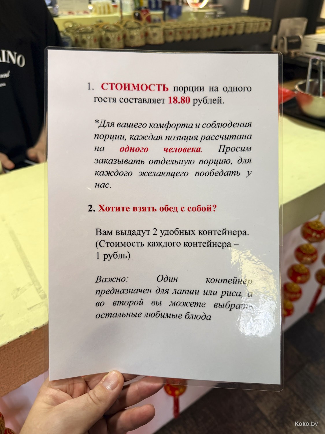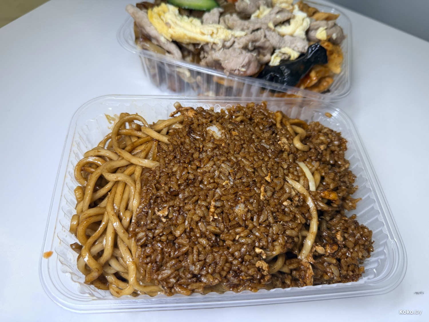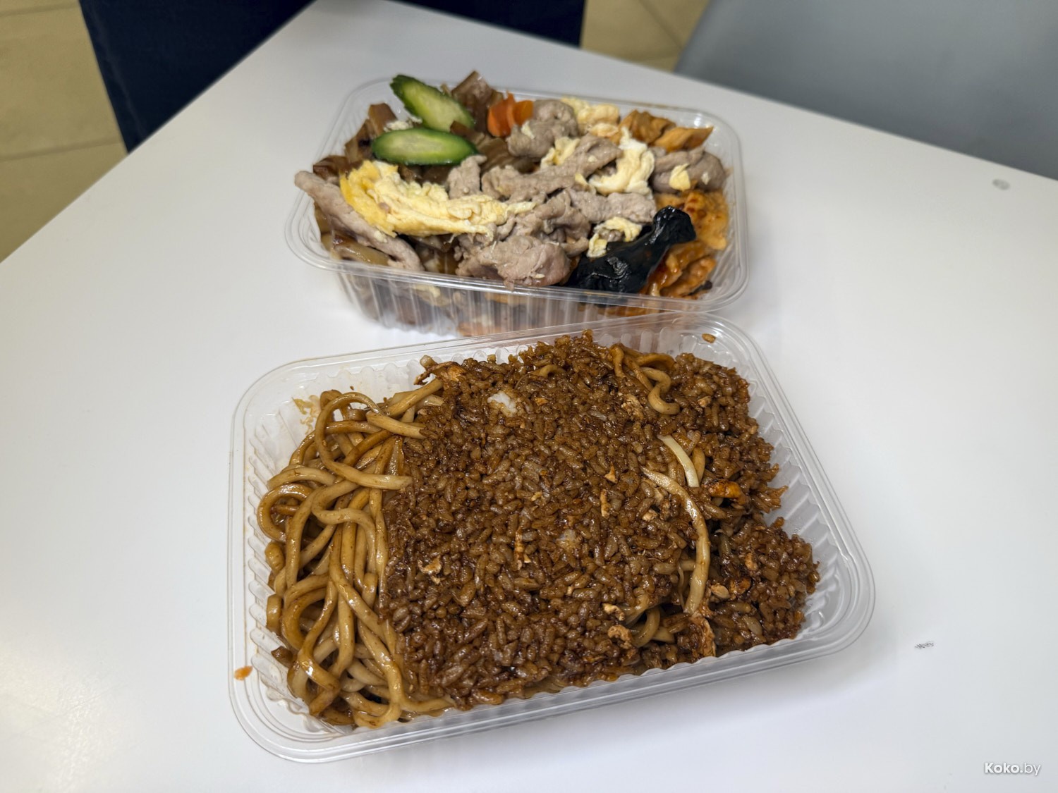 Правило навынос: в первый контейнер какое хочешь мясо, во второй лапшу или рис с лапшой, за этим пристально наблюдает большой брат.