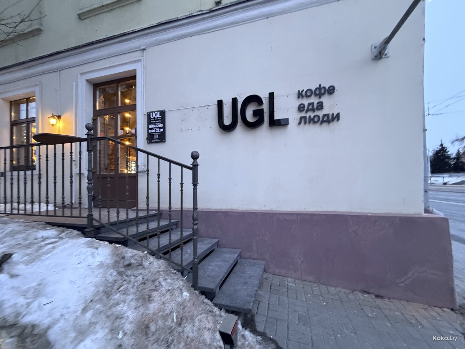 В УГЛ пришли, а не на горох поставили - это уже хороший знак, локация для общепита сомнительная, я бы сказал, неудачная. До них в этих стенах трудилась «Редакция» - без редактора, без журналистов, без изданий, тоже с кофе, тоже с завтраками. Кофейню под вывеской «УГЛ» привезли из Могилёва в Минск испытать удачу, как правило, ничего из других городов в столице не приживается, за исключением кофейной сети «Параграф» и пончиковой «Пон-Пушка».