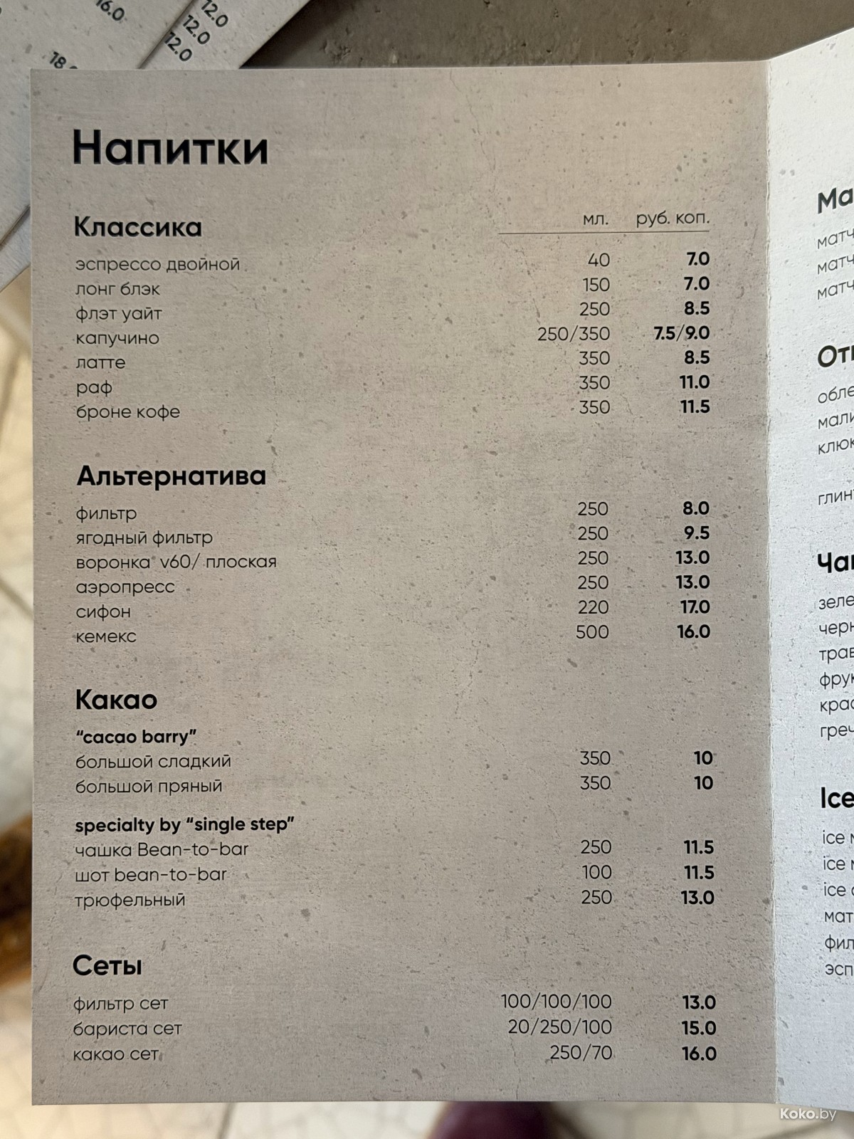 Первым подали Бариста сет за 15р и чудесный ягодно-загадочный фильтр за 8р. По кофе в сердце на мощнейшие 8 кокобаев.