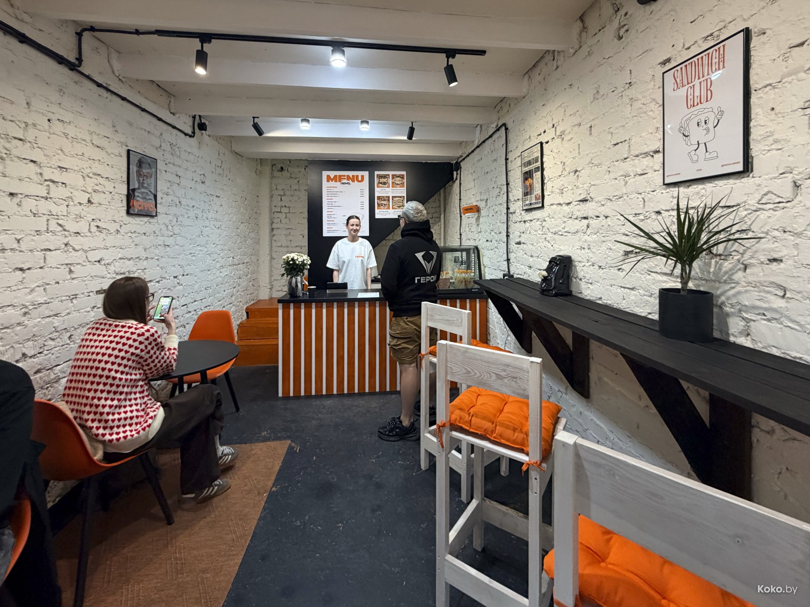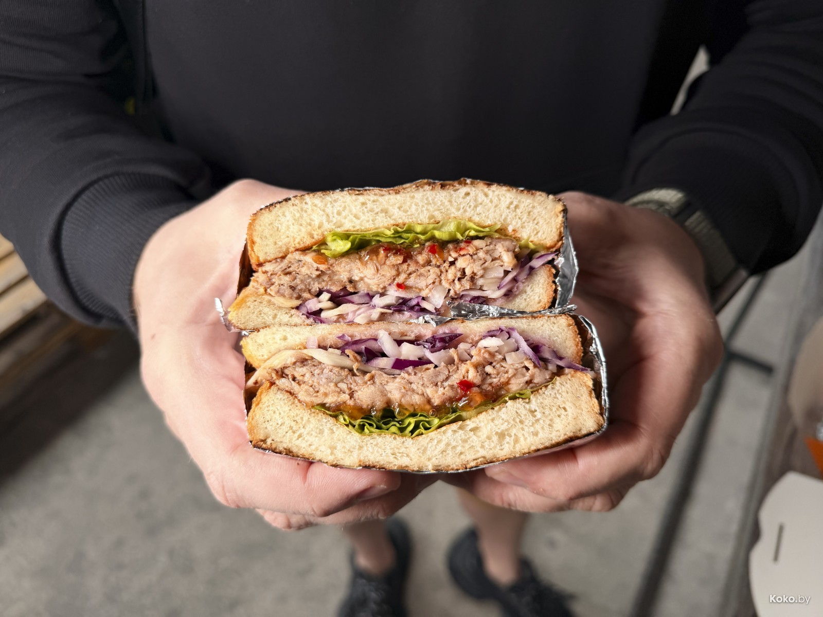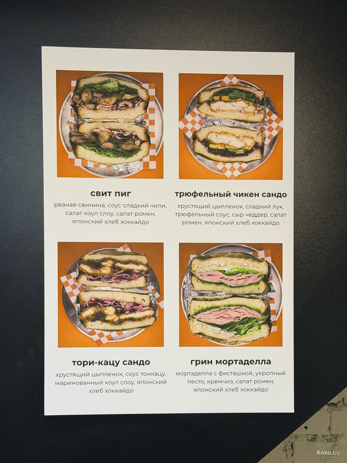 На выбор было четыре сэндвича, самодельные лимонады и фритюр. Сэндвич готовы отдать от 10 до 13р с поросёнком, это адекватная цена, если не переводить на старые деньги, в шаурму или обеды в столовой.