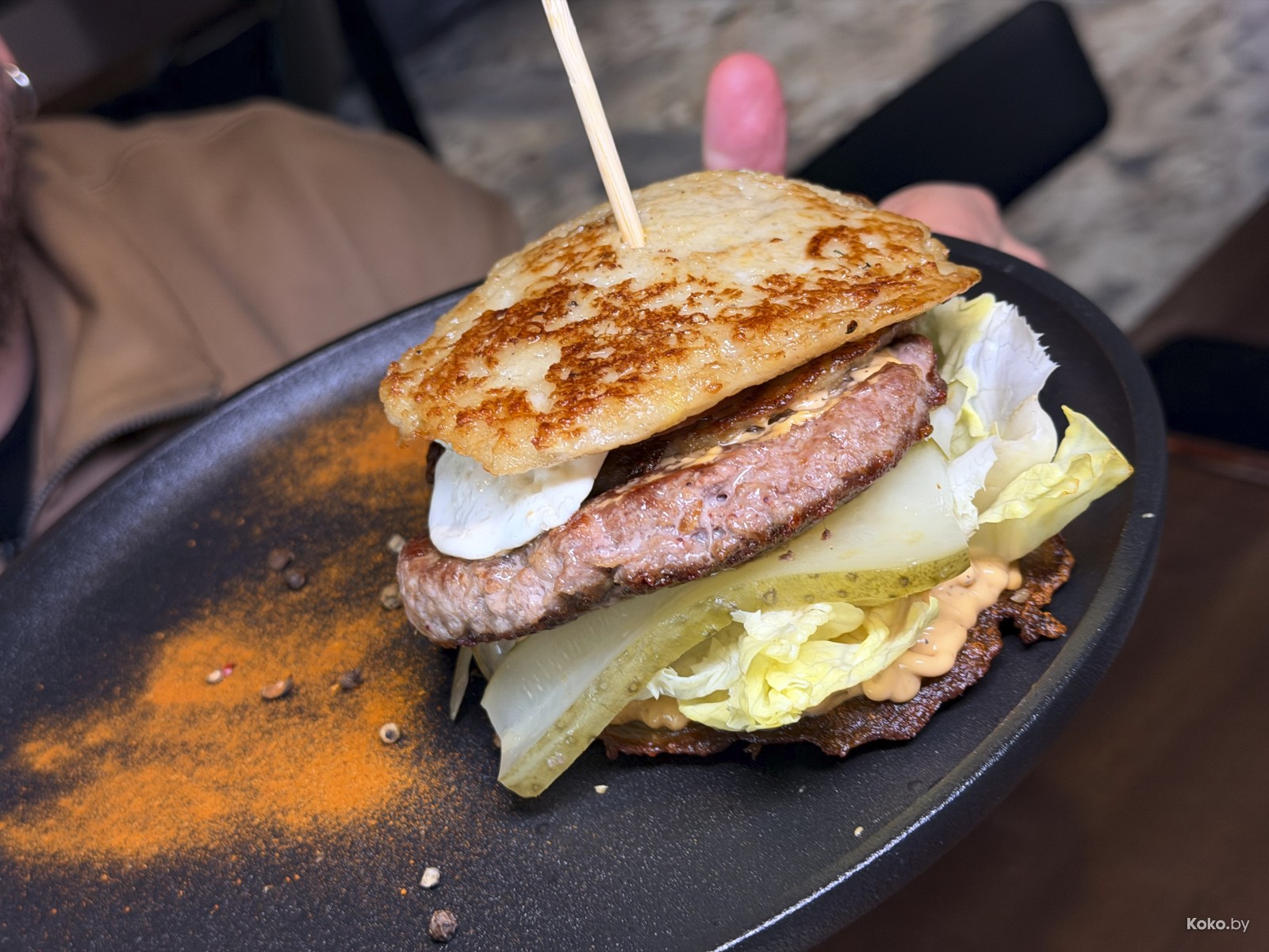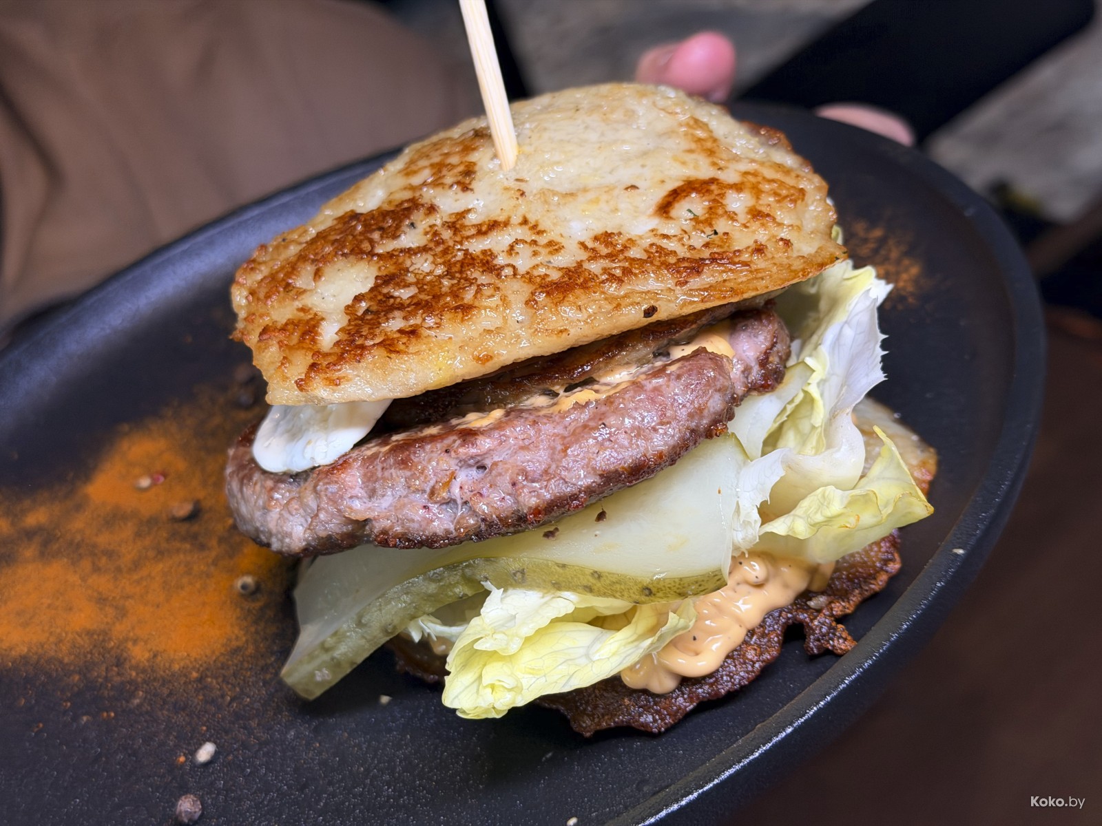 Вкусно собрали, в отличие от борща прям много. Как за завтраком молвил дед, драником ничего не испортишь, даже бургер.