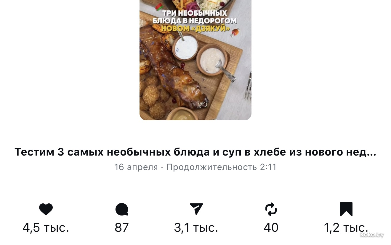 Белорусская кухня манит белорусов, судя по рекордному количеству сохранений обзора на новый деревенский ресторан «Дзякуй».