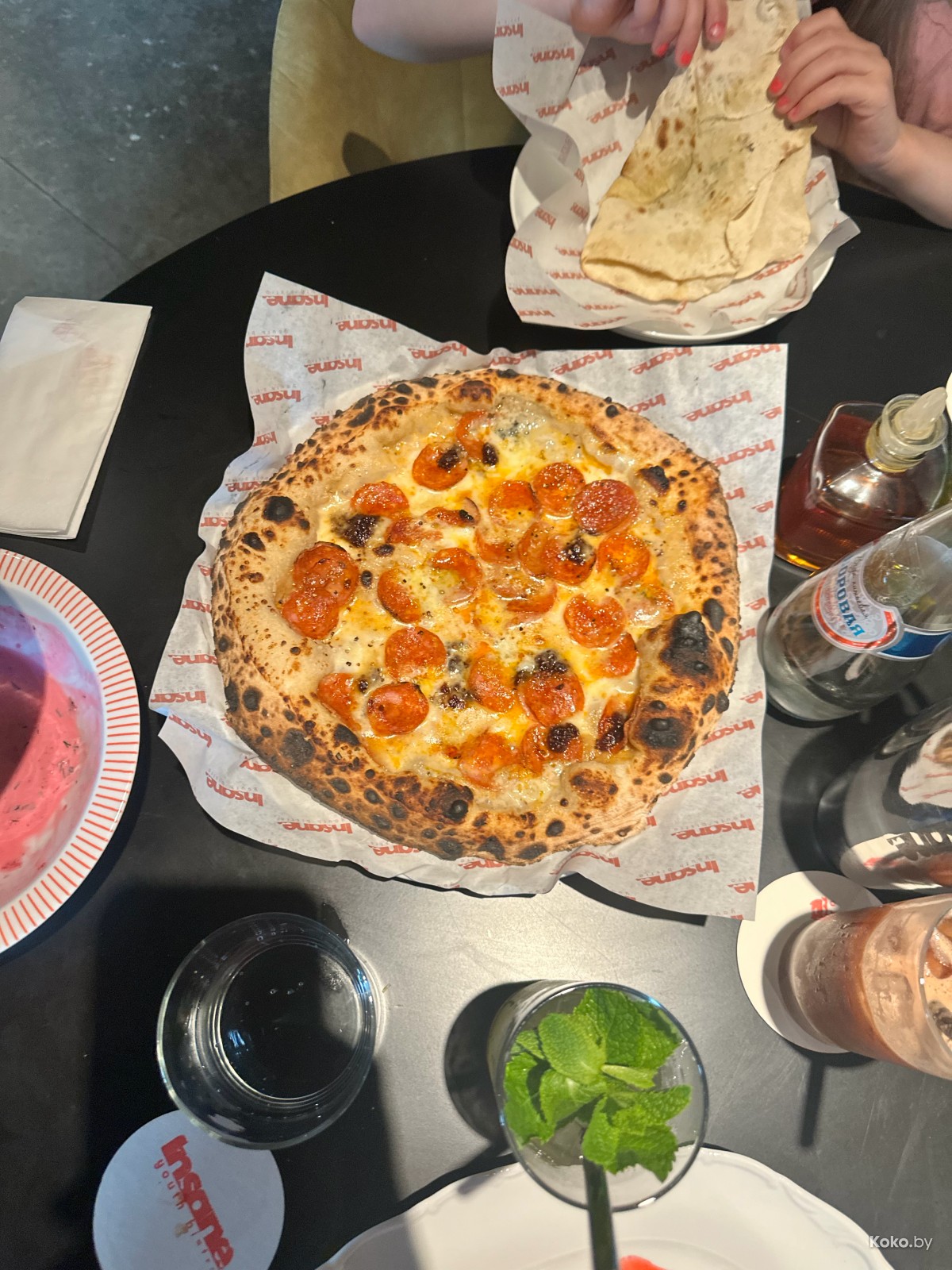 Тезисами и по делу: произошёл честный обмен 26 рублей на вкусный обед на двоих, на троих такую не сообразишь. Пиццу из огня - к тесту рекомендую ехать прямо сейчас, не пожалеете о случившимся.