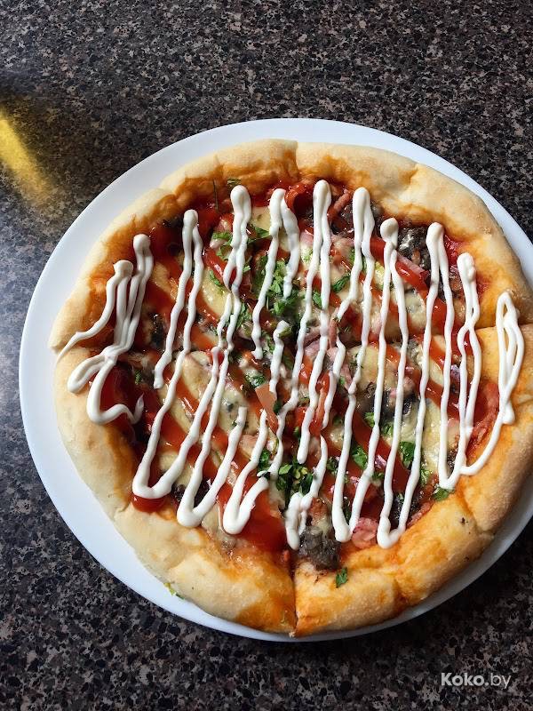 Отставить шутки с добавлением лишней буквы в слово фаер, потому что они реально готовят пиццу на огне, и внезапно шестнадцать видов шаурмяу. Такая «Фаер пицца» есть только в Заславле и у Майкла Джексона, а теперь и в Минске на Кольцова, где была пловная. За шаурму не скажу, а вот пиццу на 100% выпекают на огне за справедливые деньги, от 18р за просто Маргариту, до 28р за какую хочешь, хоть с курицей в бруснике под нашей моцареллой.