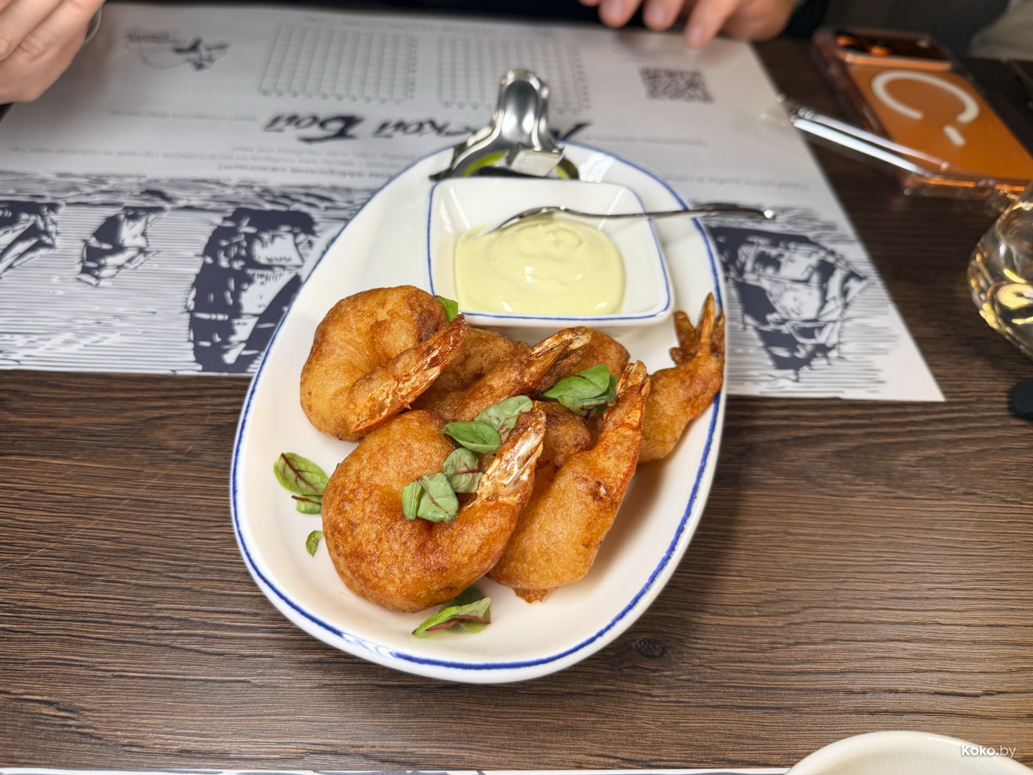 5. Пончиковые креветки с соусом миллион калорий на сгущёнке, смешанной с васаби за 24р, вкусно, но в соусе мало хреновой остроты.