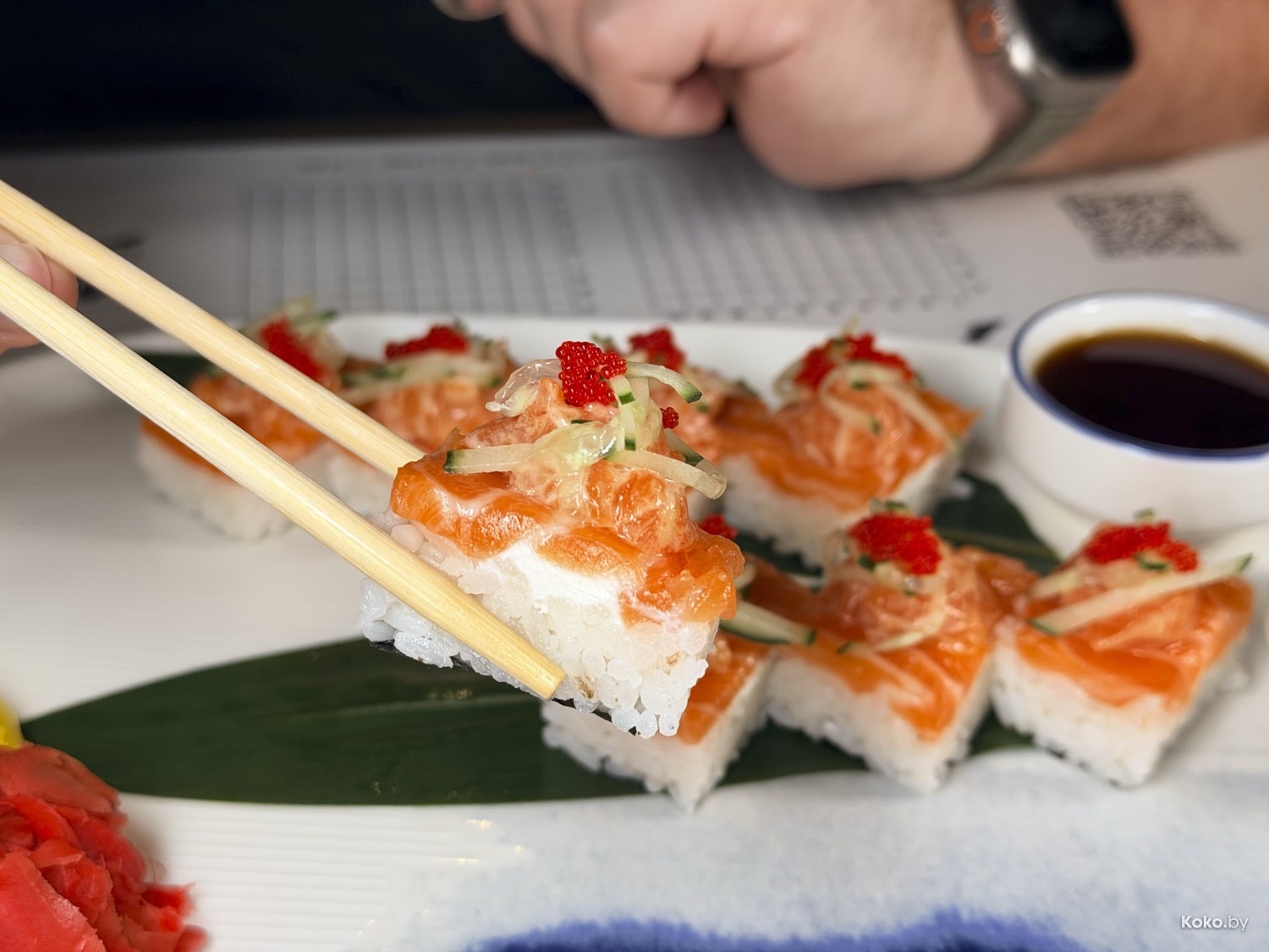 4. Как рисовый бутерброд - пресс-суши с форелью под острым соусом Шрирача и свежим огурцом - моё лучшее вложение 26р.