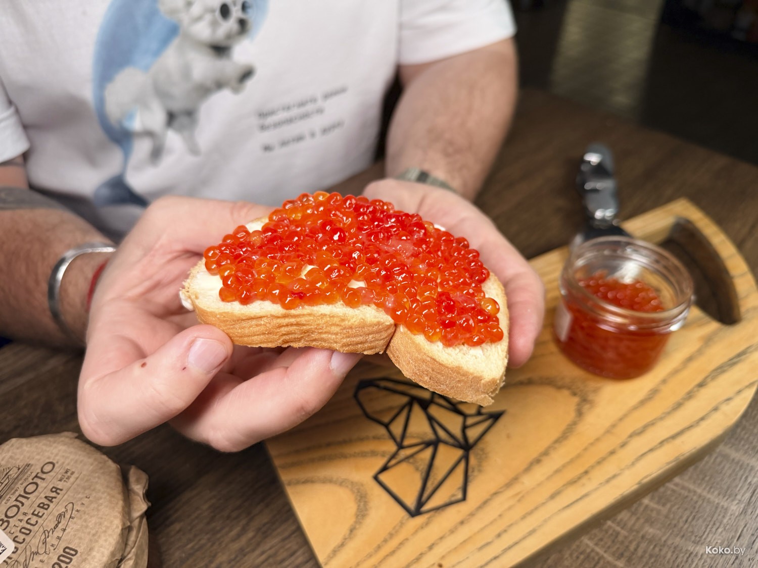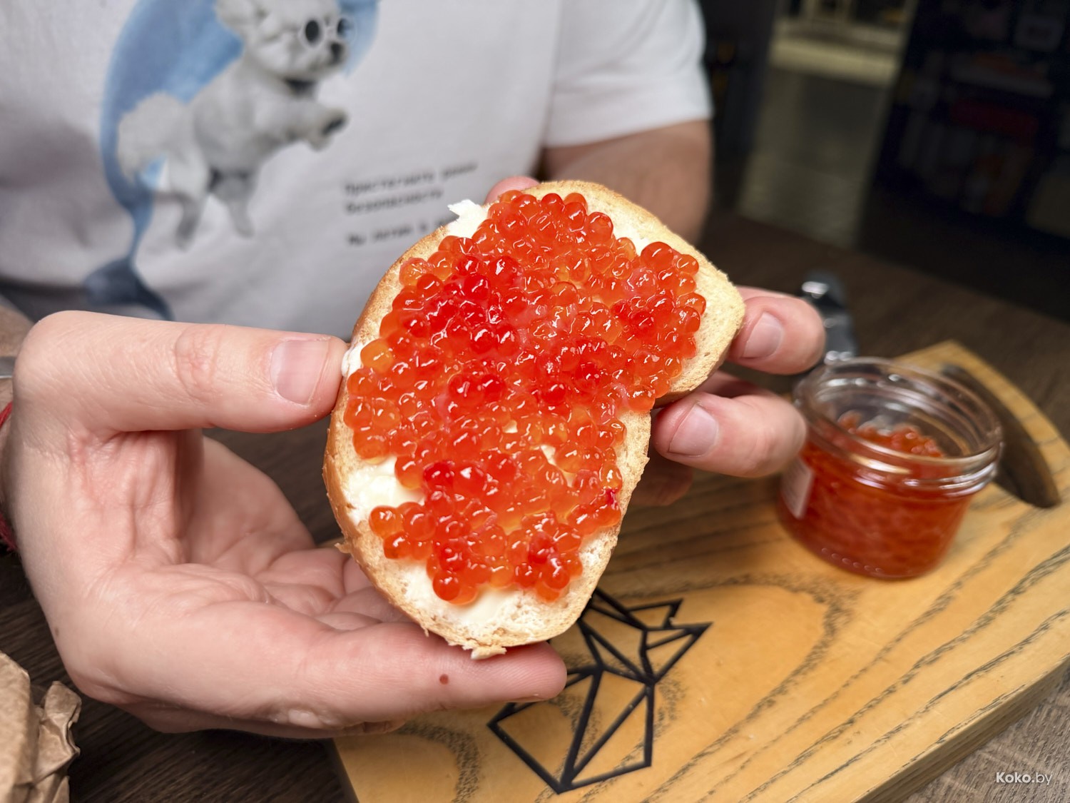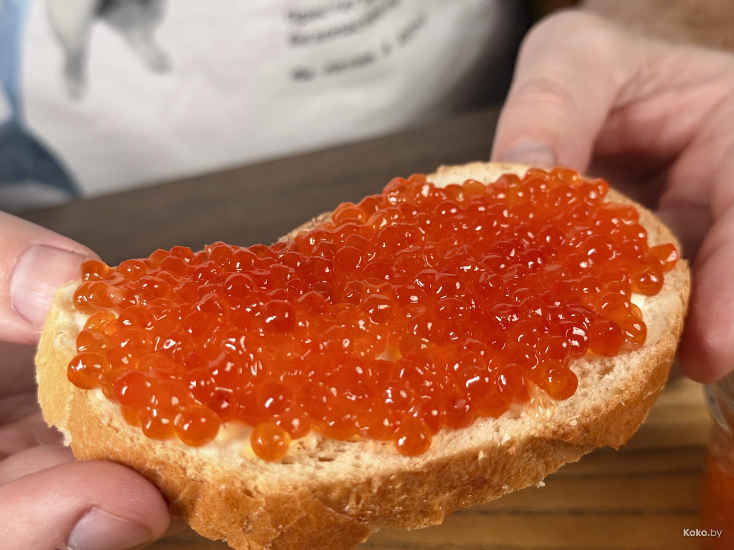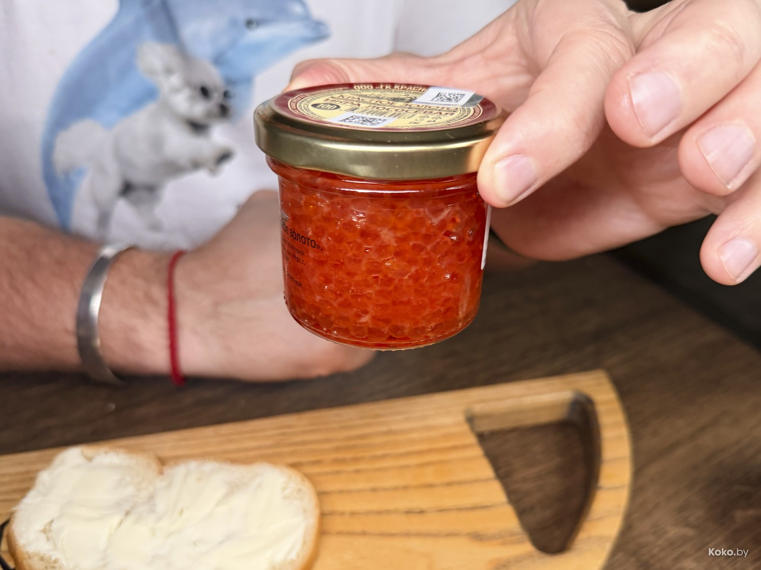 Тестить красную икру буду на легендарном уже нарезанном батоне из Слуцка, когда икра в стеклянной банке - это добрый знак.
