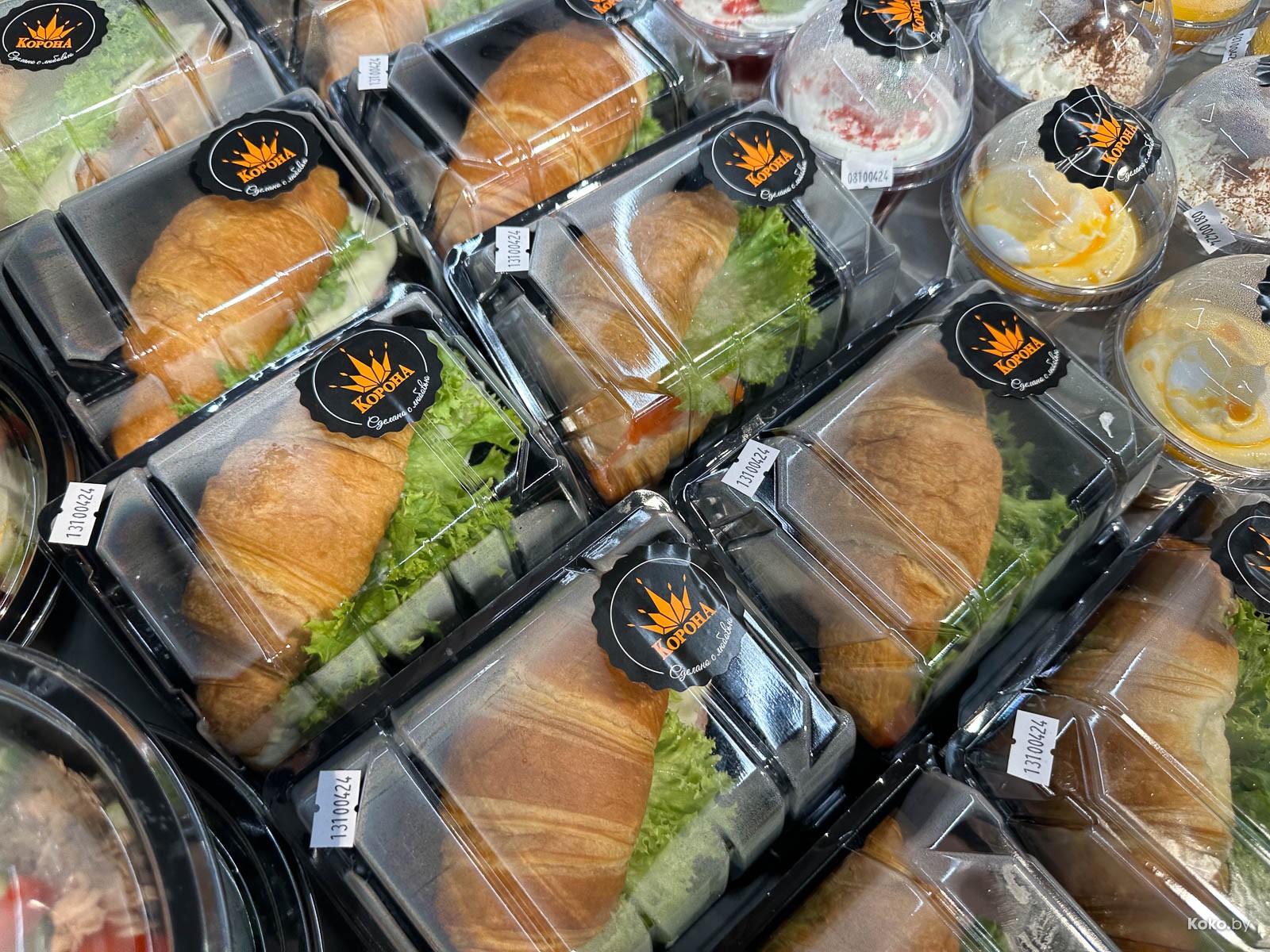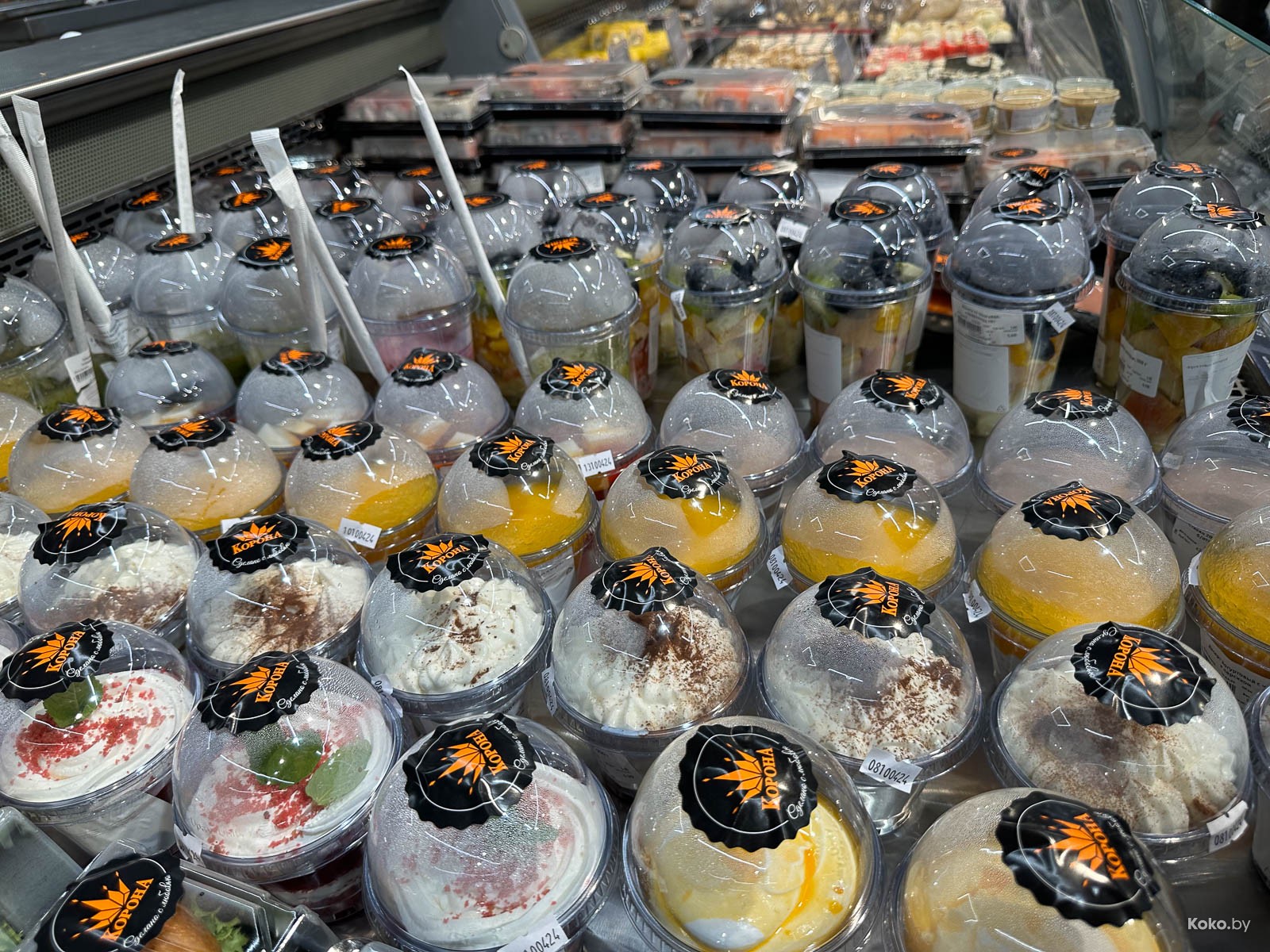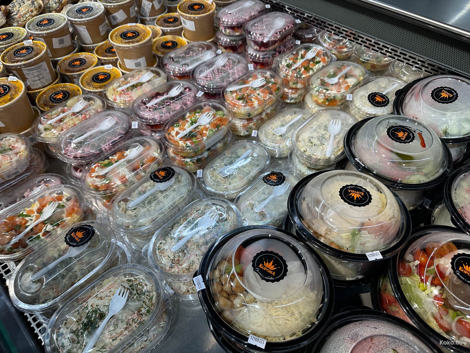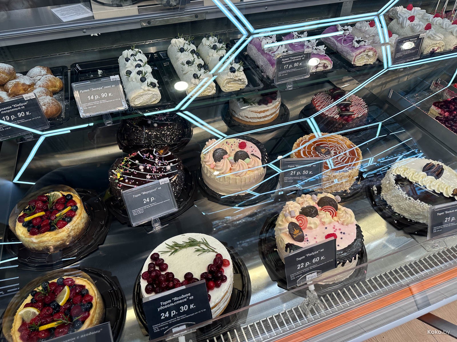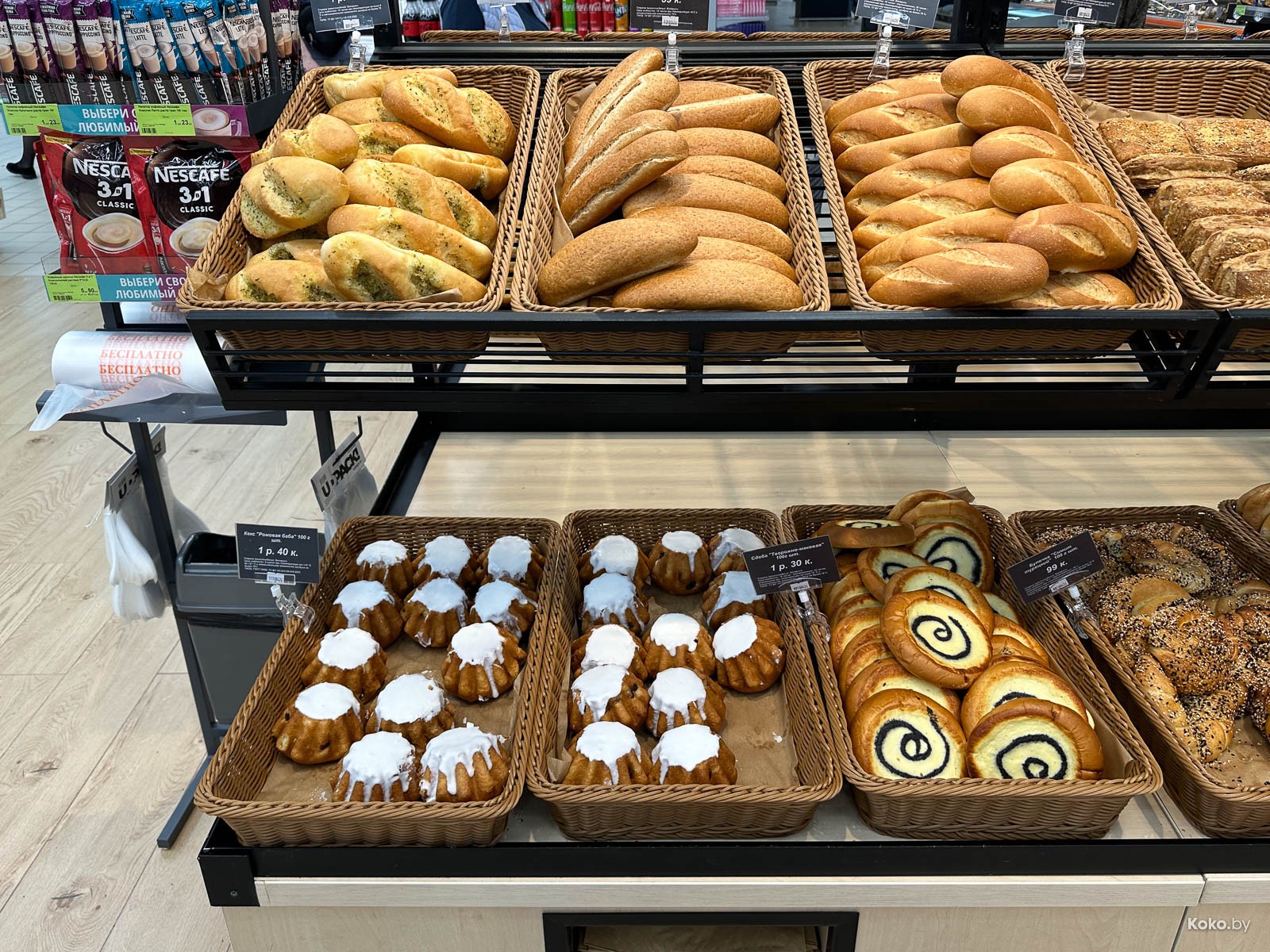 Если найдёте, чего не хватает - пишите! Вижу здоровенный отдел «Овощи энд фрукты», выпечка, на несколько витрин своя кулинария, у которой 15% скидка после 20:00, раздел с рецептами своих сладостей.