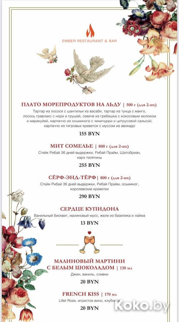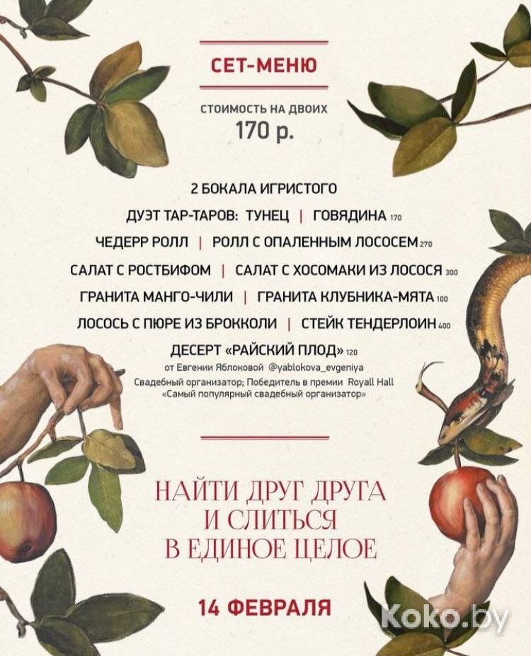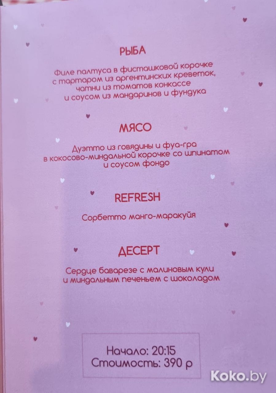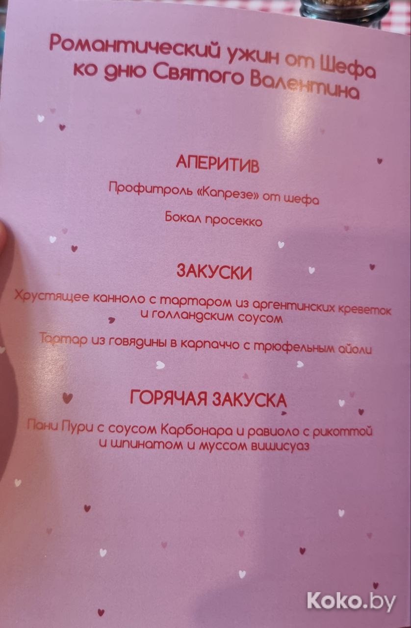 4. По-богатому можно встретить «День всех влюблённых» в траттории «Ла Скала», там придумали максимальный сет на двоих за 390byn.