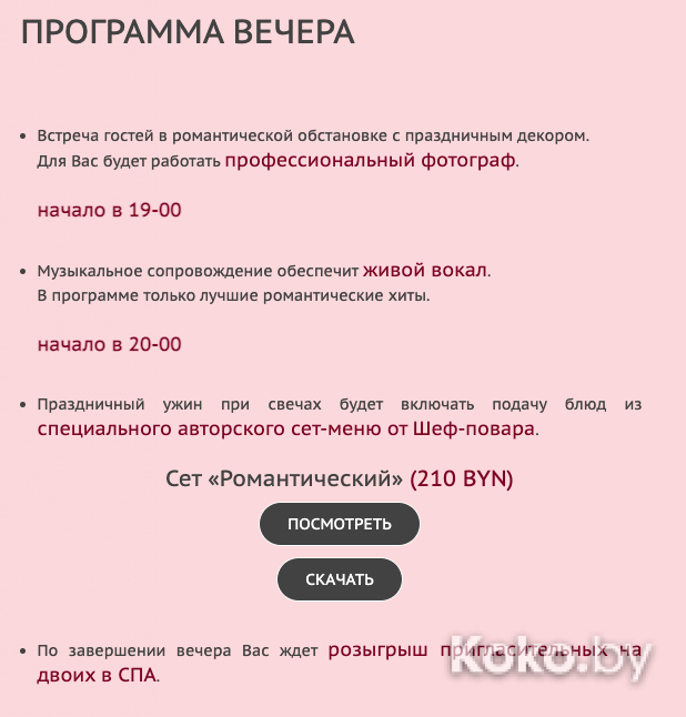 Бывают случаи, когда на карте не всегда есть деньги, а отдохнуть или порадовать близкого человека хочется, вот на этот случай и нужна «Красная Карта» - сигнал красный! А сейчас покажу, куда бы я пошёл со своей второй половинкой на романтик со свечами, в некоторых заведениях есть специальные лова-лова сеты. Бронируйте!