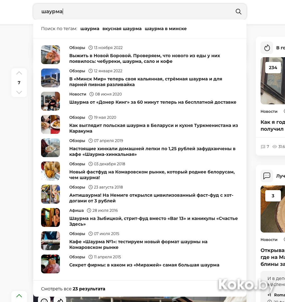 4. Через навигационную панель в два клика вы найдёте обзоры на заведения, где отдохнуть, рецепты и новости. Мы за минимизацию.