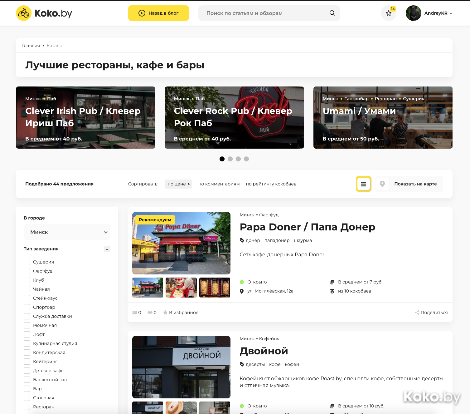 5. Наш каталог заведений с рекомендациями приведёт вас, куда нужно.