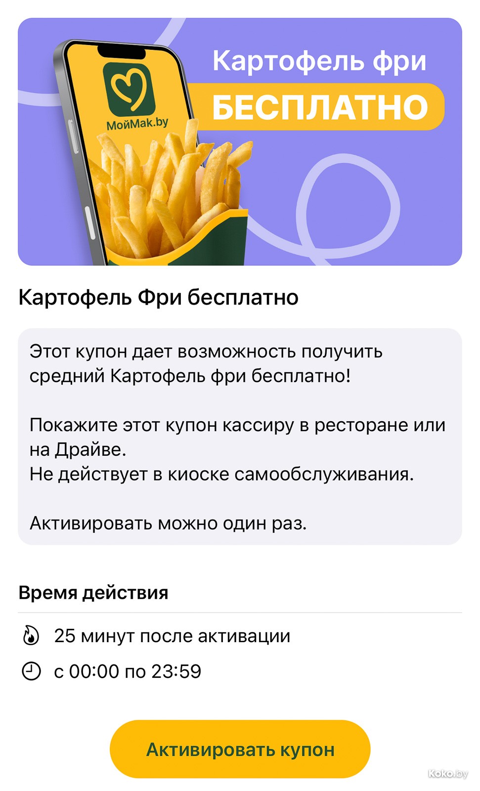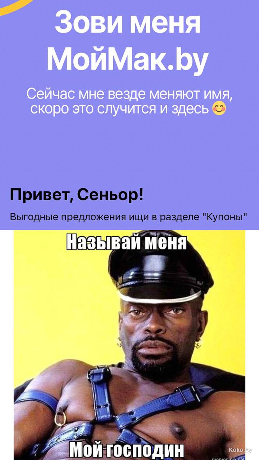 2. Вместо бумажных купонов запилили мобильное приложение с очень странным приветствием «Зови меня МойМак.by», что к чему?