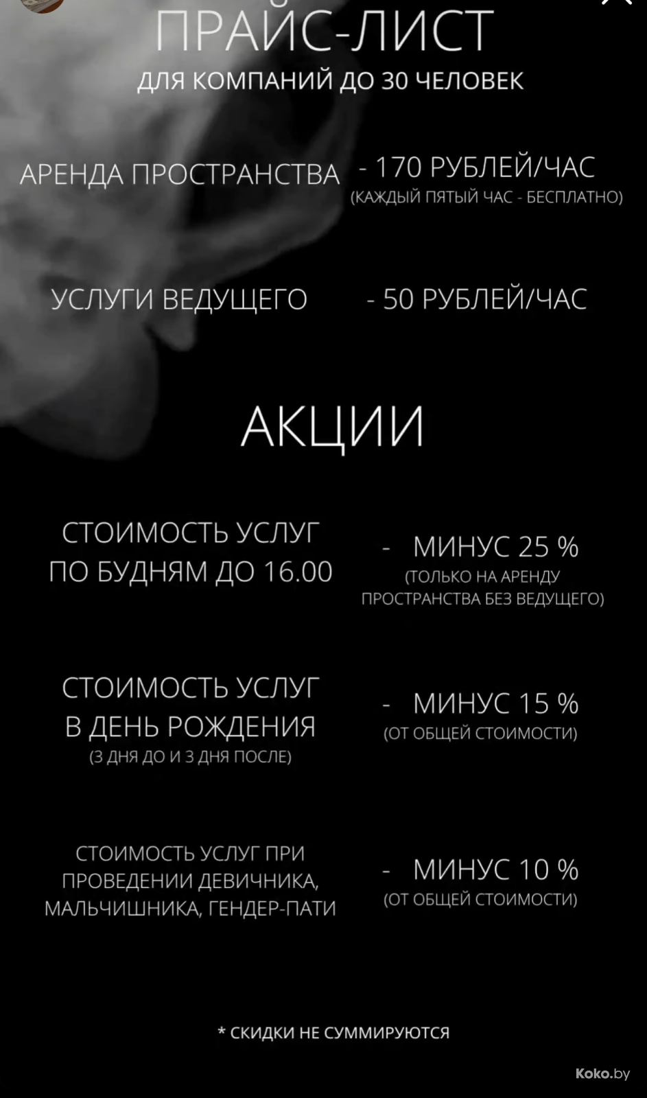 ЦЕНЫ: арендовать игровой зал до 15 человек обойдётся в 100р за час со всех, говорят, для игры хватает 2 - 3 часа. По желанию продают услуги ведущего - ещё 35р за каждый час. На мальчишники, девичники, гендер-пати - скидка 10%, в День рождения - 15% скидка. Берите тапочки.