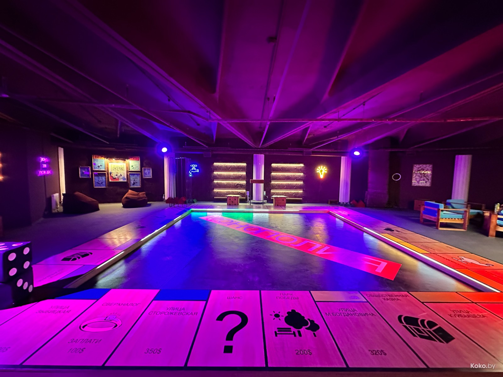 Буквально недавно в городе открыли пространство для игры в гигантскую «Монополию» на выживание за деньги. Но чтобы её найти, вам придётся пройти небольшой квест: забронировать за неделю время с 30%-ной предоплатой, приехать на переулок Козлова, 29, обойти БЦ «Колизей» и подняться на лифте на седьмой этаж. Напомню, «Монополия» - экономическая и стратегическая настолка для двух и более человек, у меня же в топе всегда был «Бизнес».