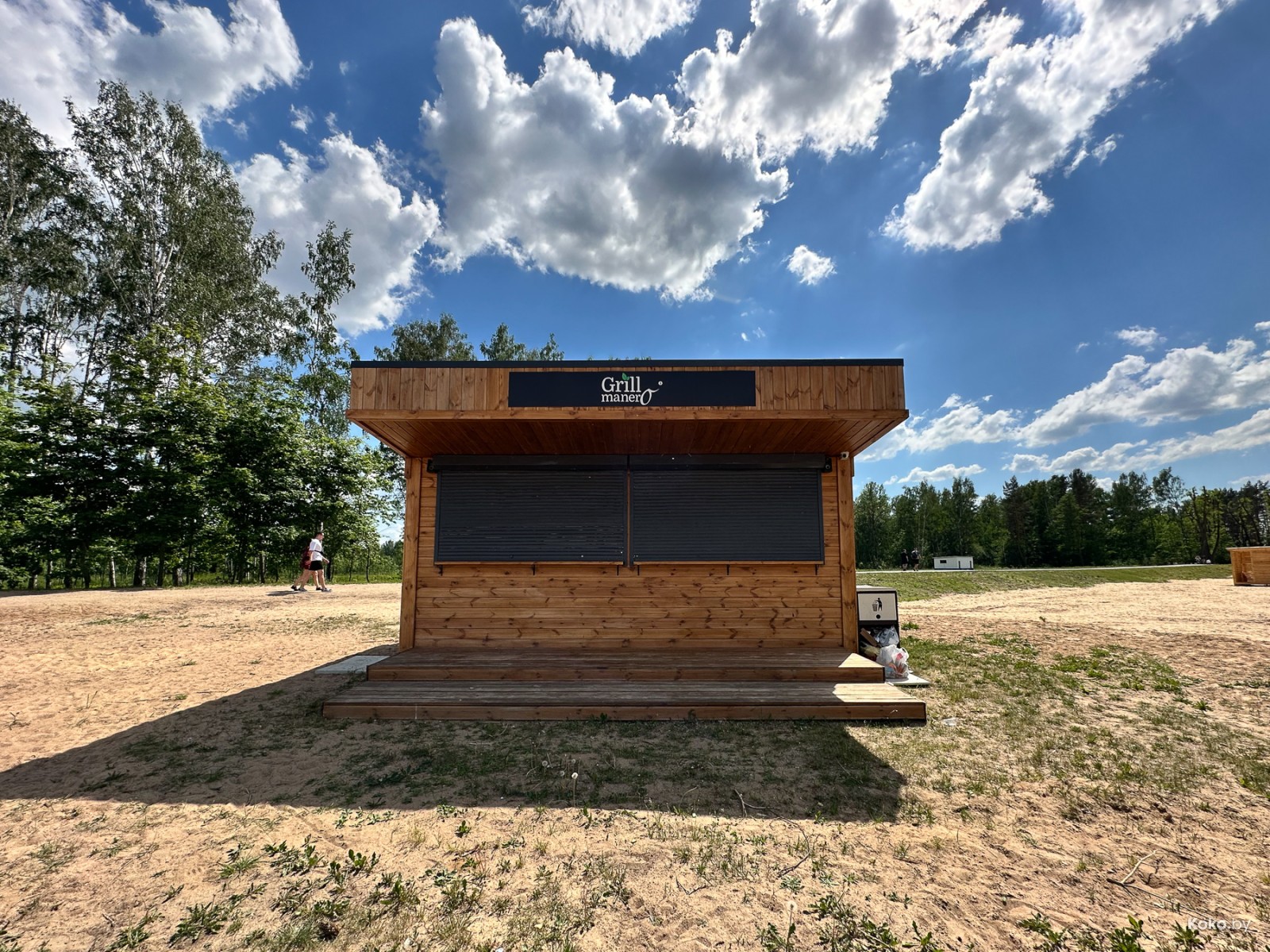 Создали оазис загородного летнего отдыха на том месте, где в том году был жуткий ураган. Теперь здесь белоснежный мелкий песок, как на Бали, приделанные к земле лежаки у воды, ещё не до конца зашитые раздевалки, сетка для игры в волейбол или бадминтон, пара беседок, где можно поесть свою еду, другая будет позже. У заезда несколько беседок с мангалами, детская игровая зона, естественно биотуалеты и контейнеры, куда мы все дружно будем сносить мусор.