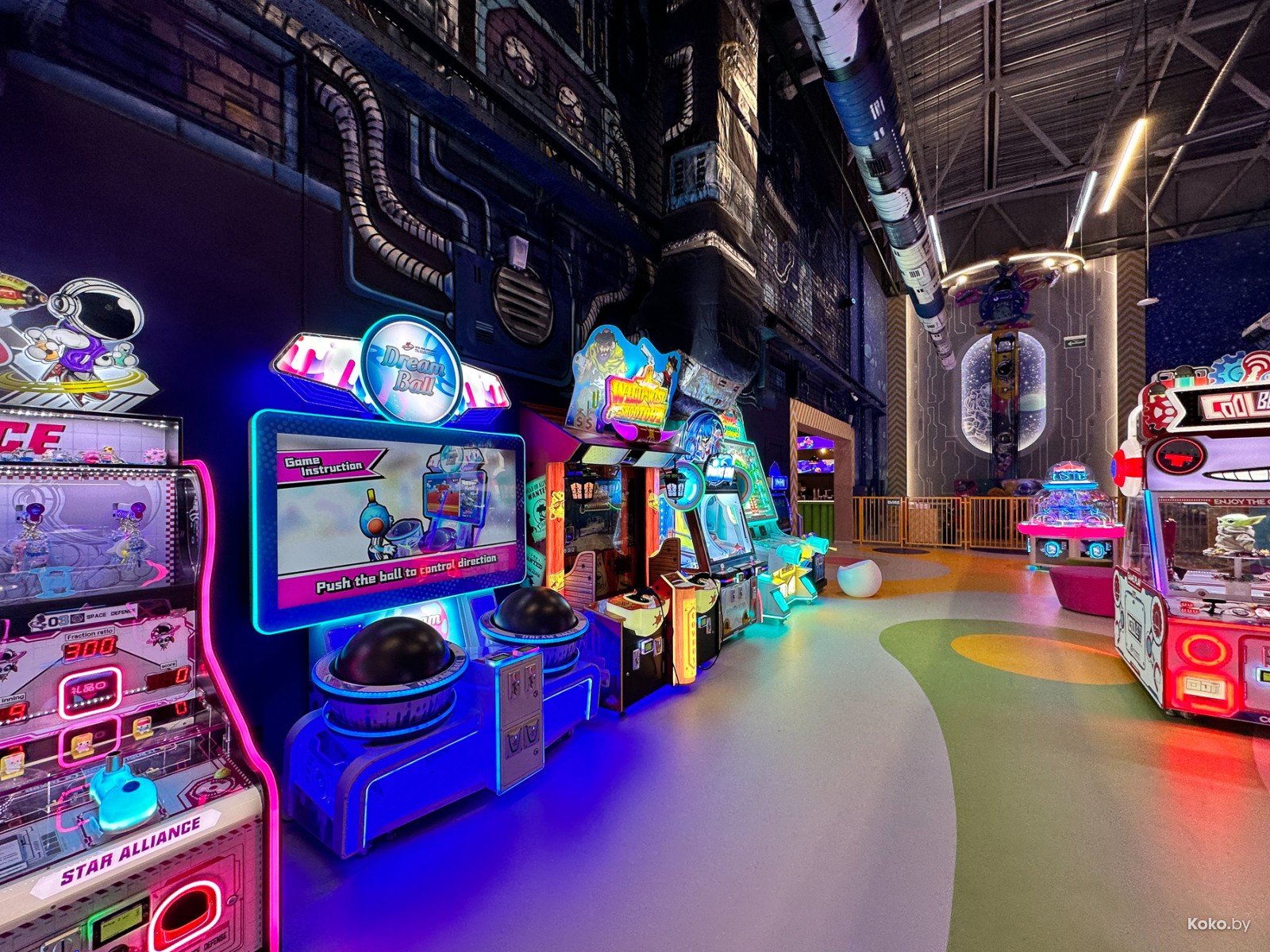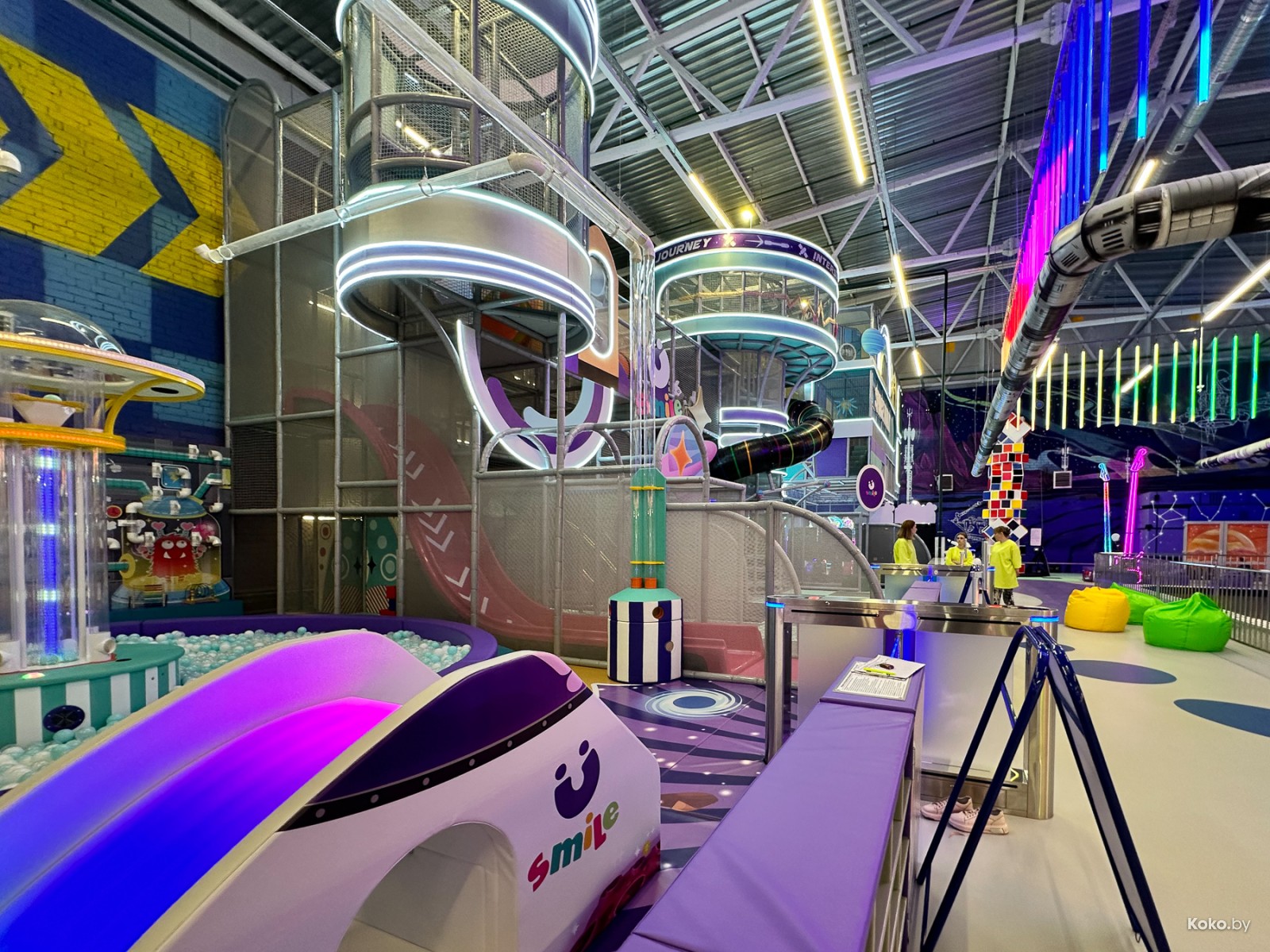 По традиции первыми пришли на тест за пару часов до открытия, чтобы всё вам показать. Новый парк развлечений «Юсмайл» занял место сезонно-овощного рынка в торговом центре «Экспобел». А это, как-никак, здоровенный ангар визуально на 2000 квадратных метров с высокими потолками. Внутри есть всё, от чего кайфуют дети и отчасти взрослые, даже аттракционы поместились со всякими горками, виртуальной реальностью, батутной ареной и автодромом.