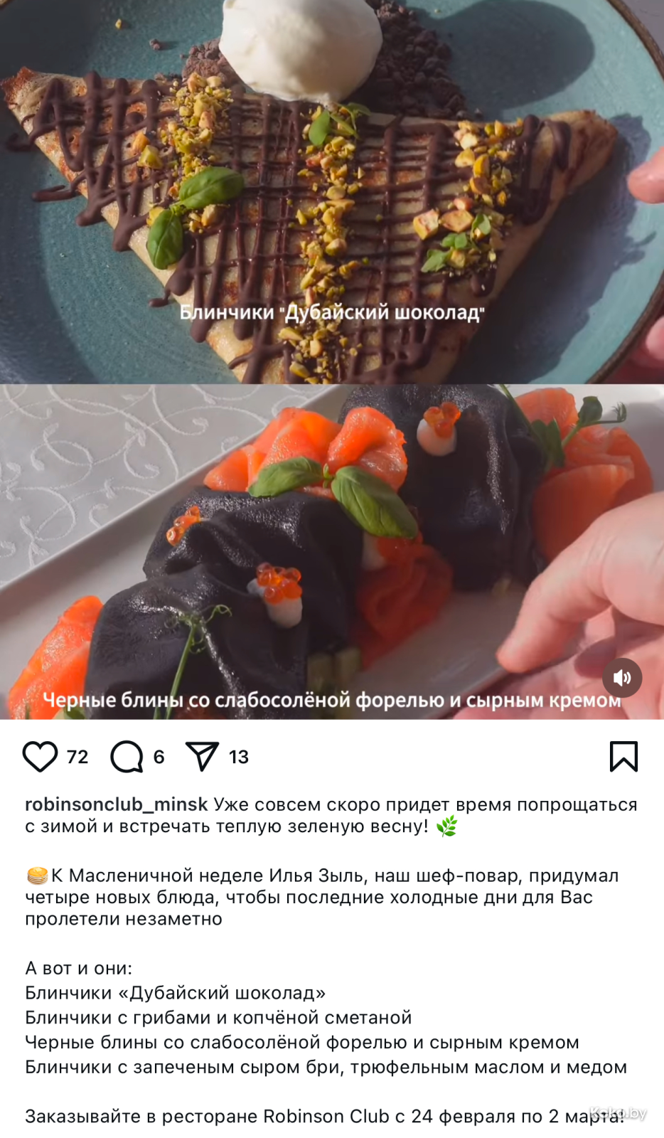 С 24 февраля жду ваши отзывы на блины из заведений Беларуси.