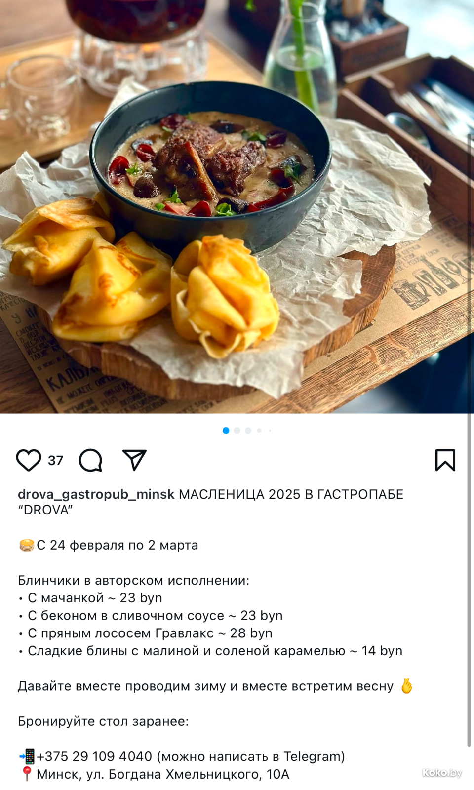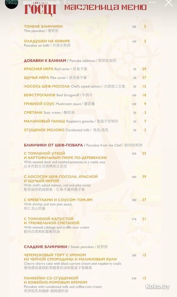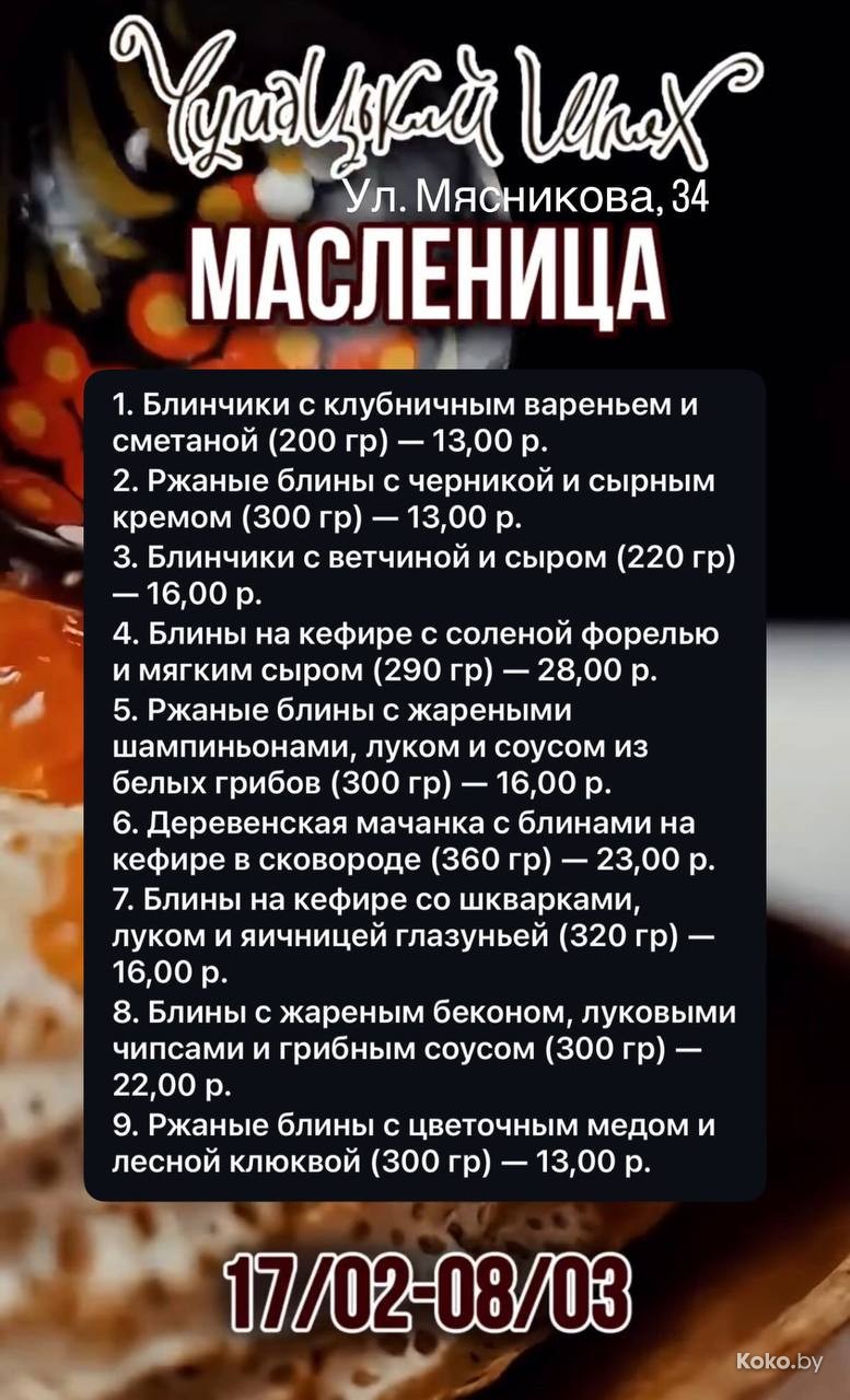 В каких заведениях Минска поесть вкуснейших блинов на Масленицу 2025 года. Собрал для вас меню с ценами и не ищите!
