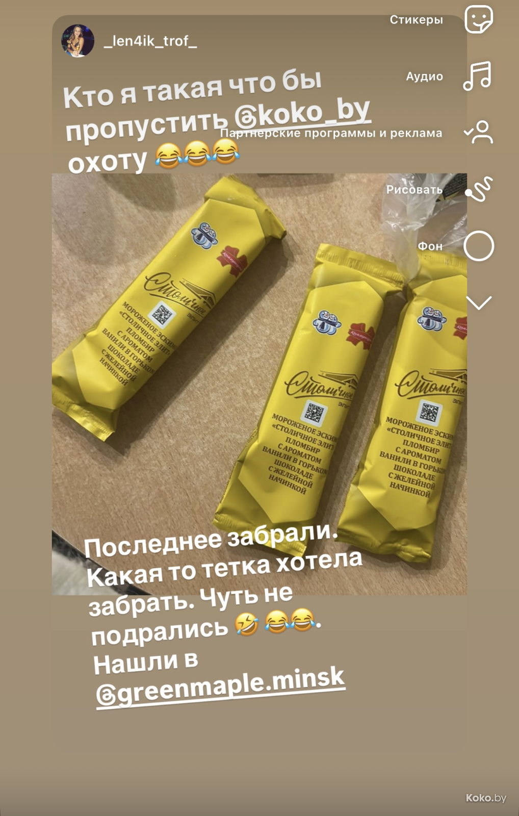 Мороженое разносят с полок магазинов «Короны», «ГУМа» и «Гринов» со скоростью выпуска очередных новинок. Советую не временить!