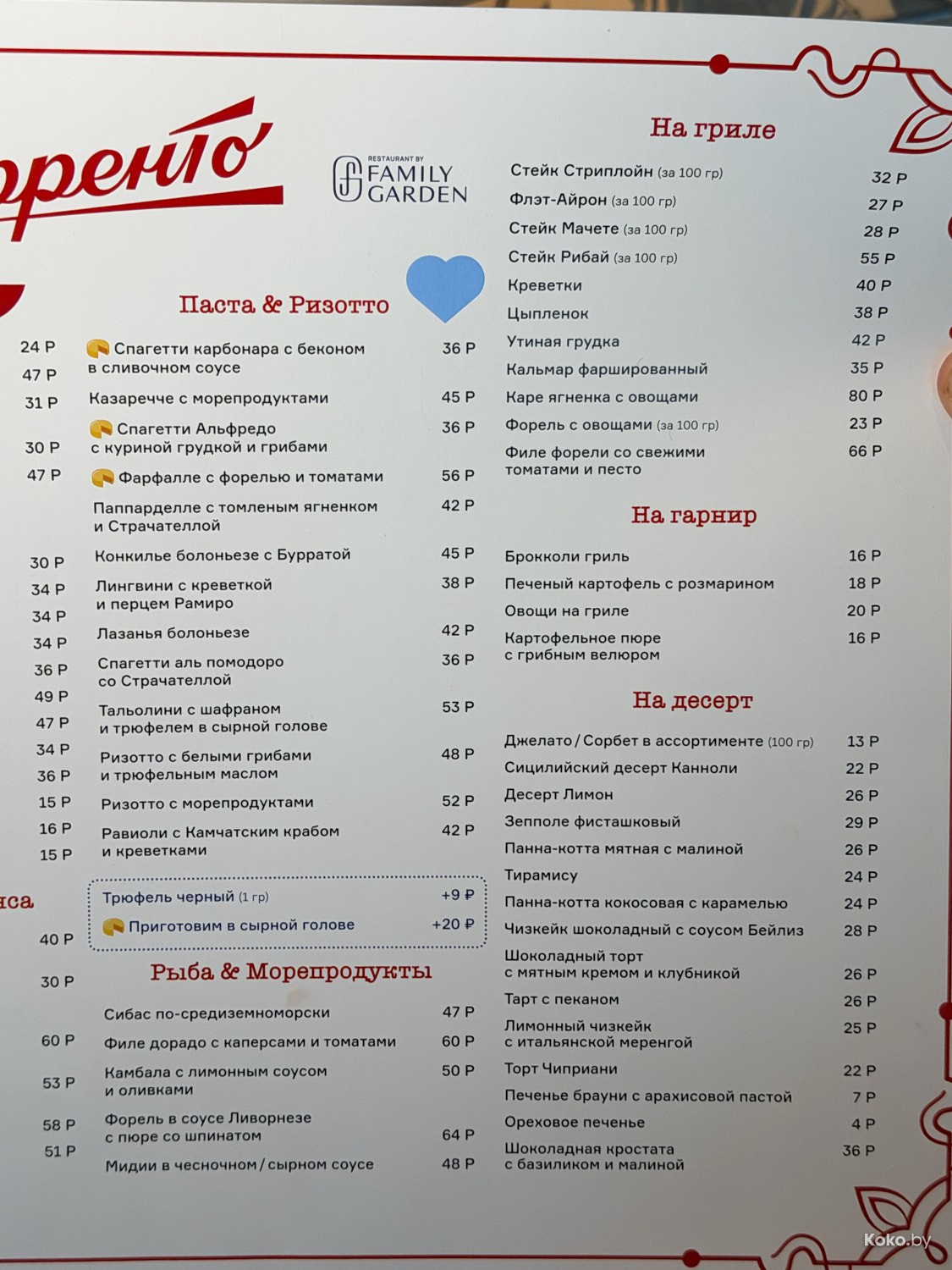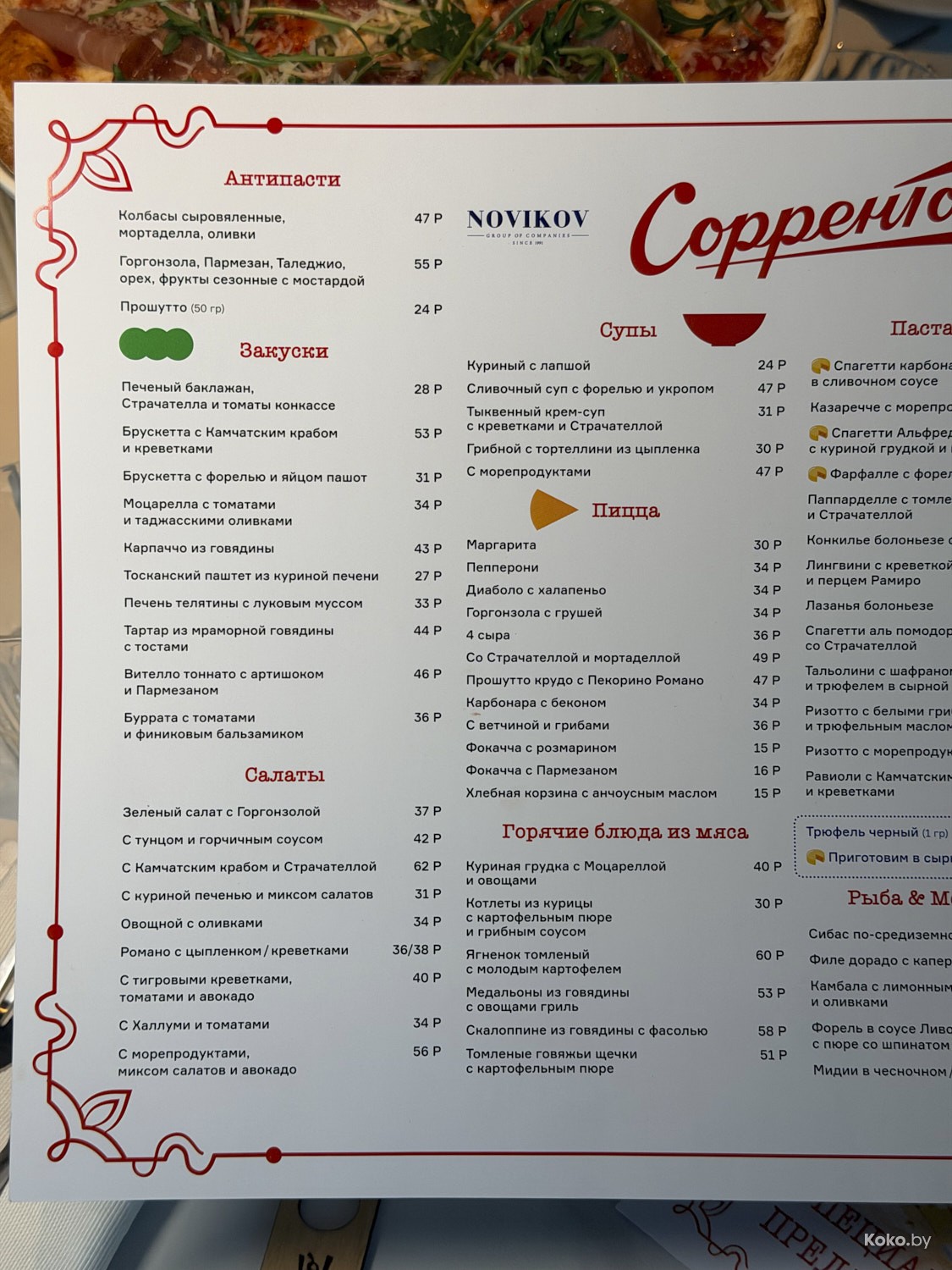 В меню классика итальянской кухни, стейки на гриле, баранина и морепродукты. Вот обзор «Сорренто» с официального открытия.